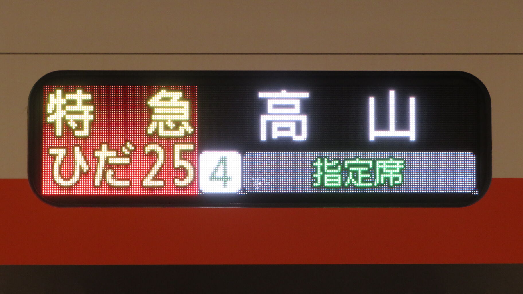 列車名欄に、ひだの乗車位置が表示されるようになっていました。