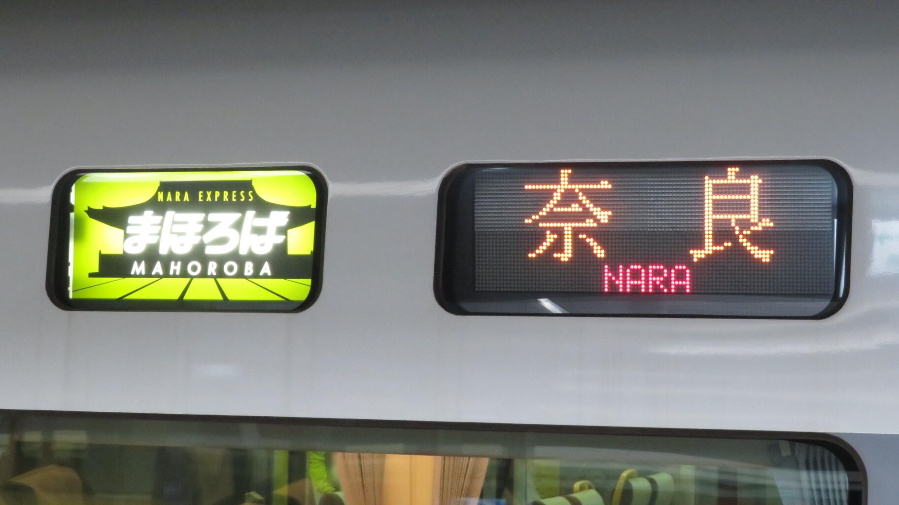 一番上の段に、特急 「まほろば」 奈良行きの表示が出ていました。