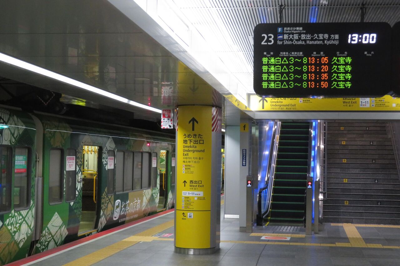 23番のりば(おおさか東線 地下ホーム)や 1・2番のりば(大阪環状線ホーム)の発車標も、『停車中』 表示が出ません。