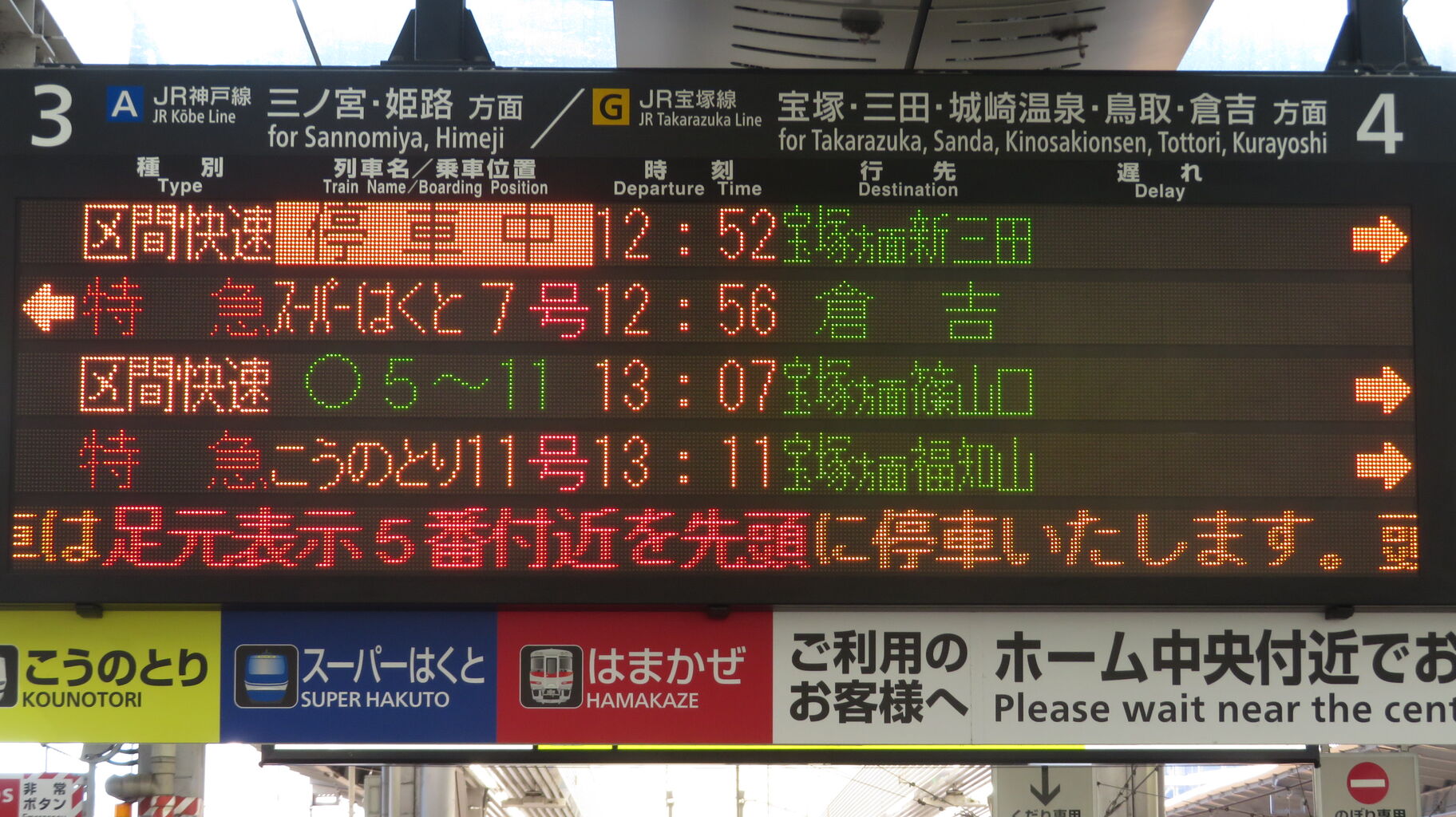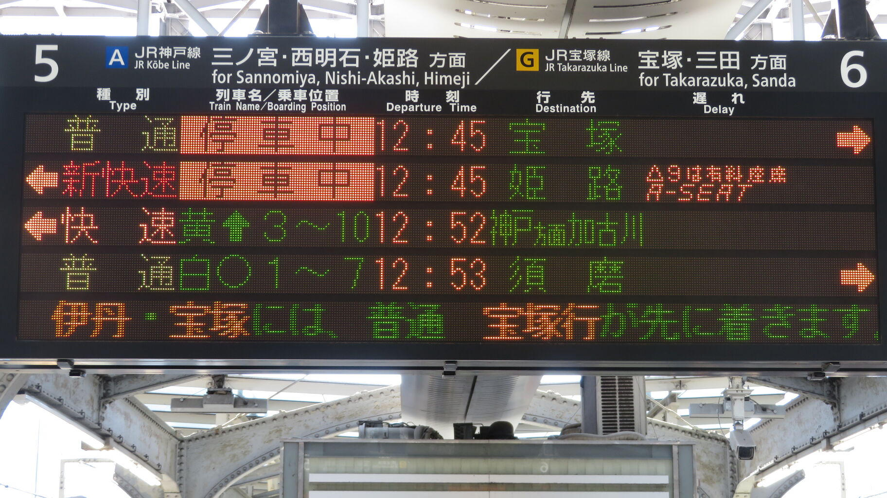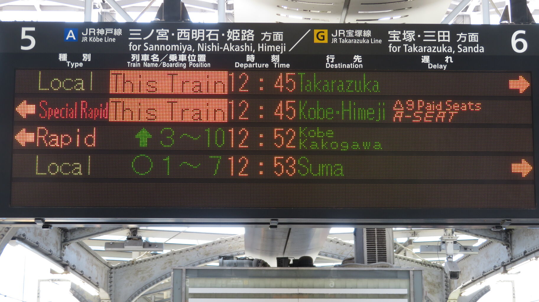 続いて、5・6番のりば(JR神戸線ホーム)の発車標を撮影。