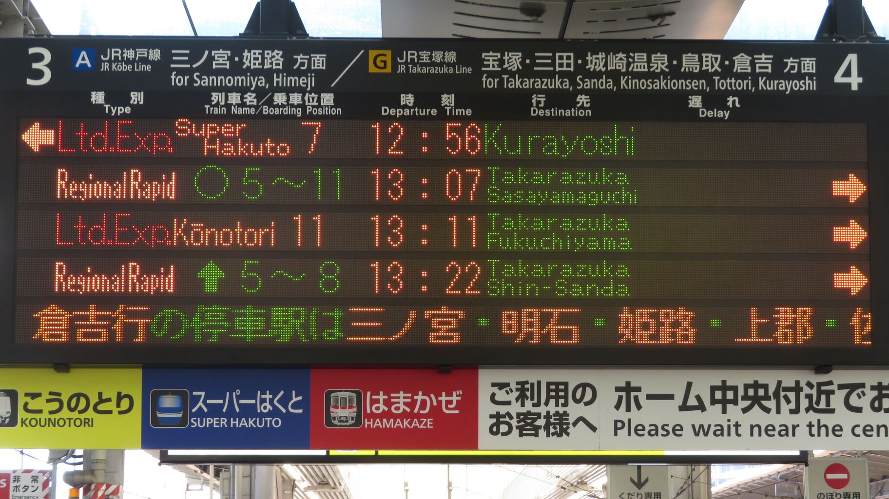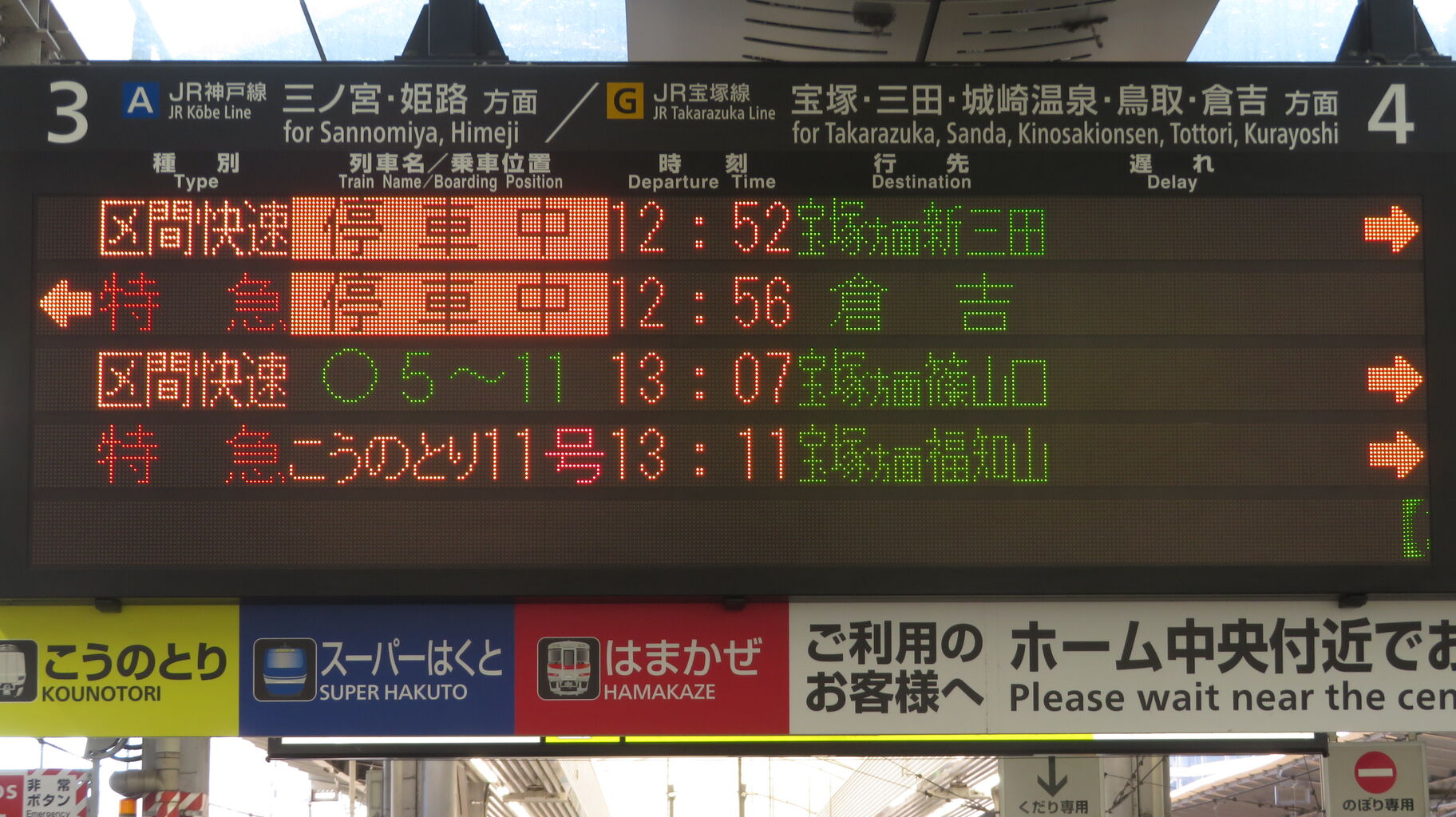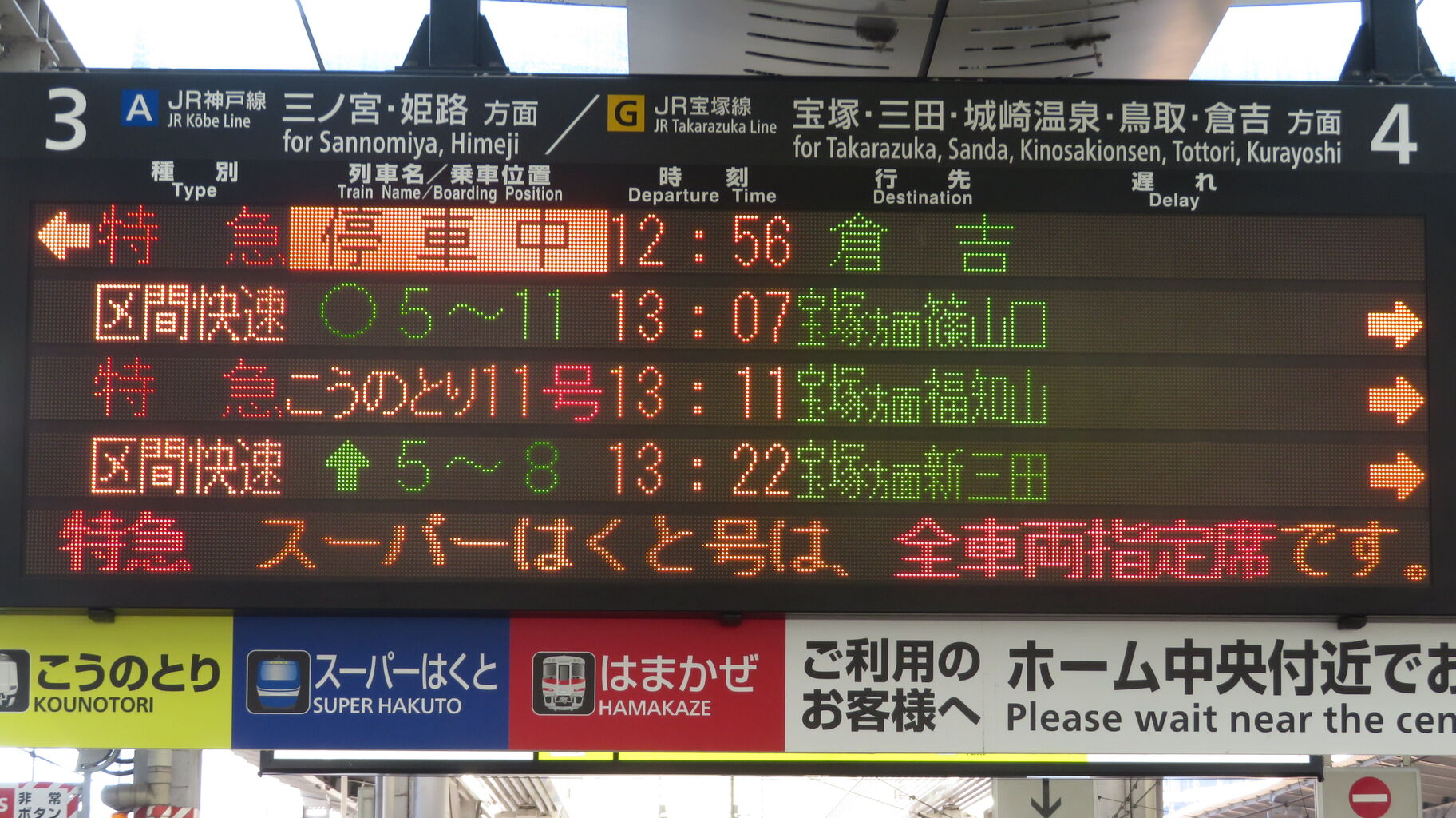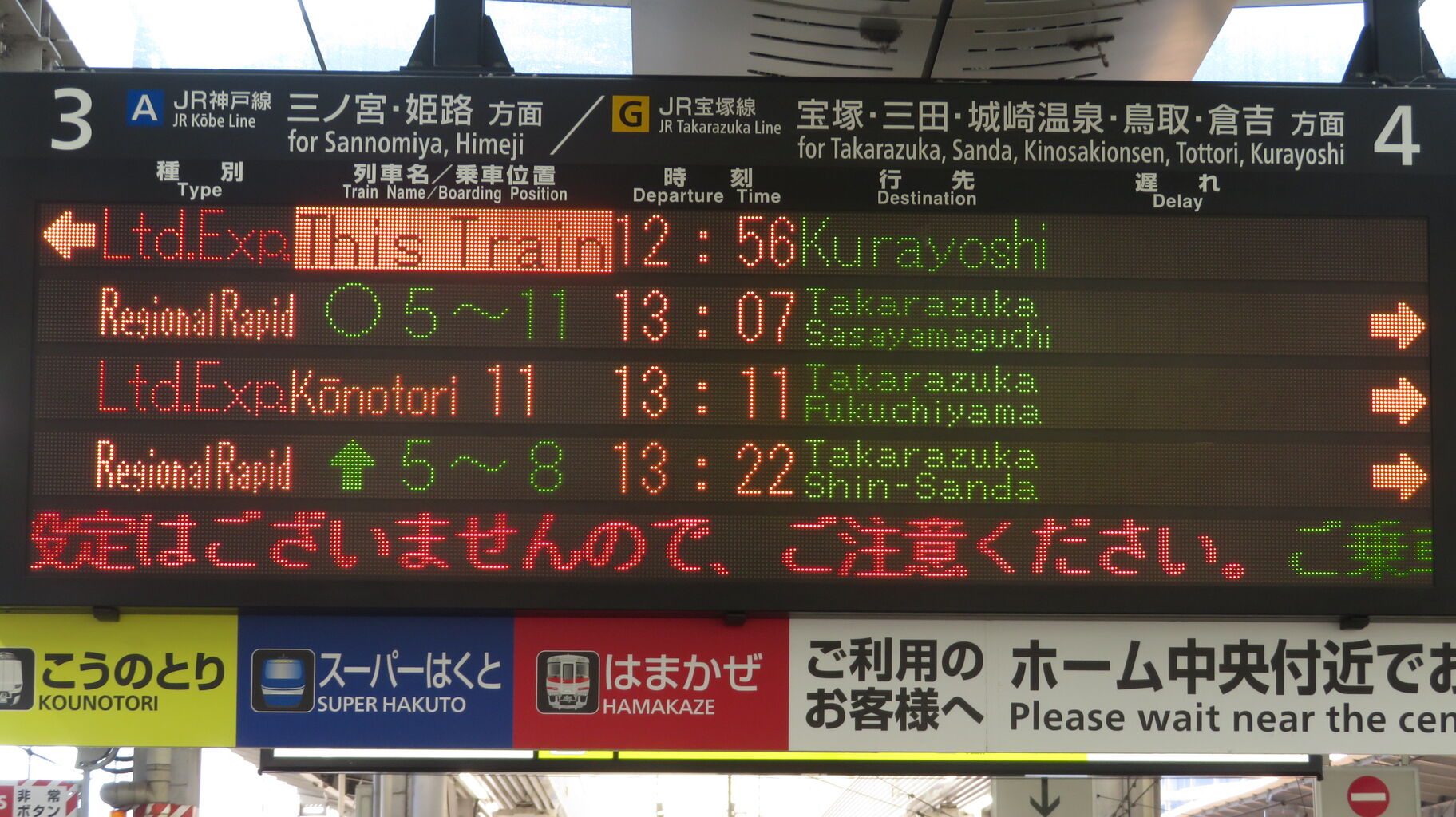 続いて、5・6番のりば(JR神戸線ホーム)の発車標を撮影。