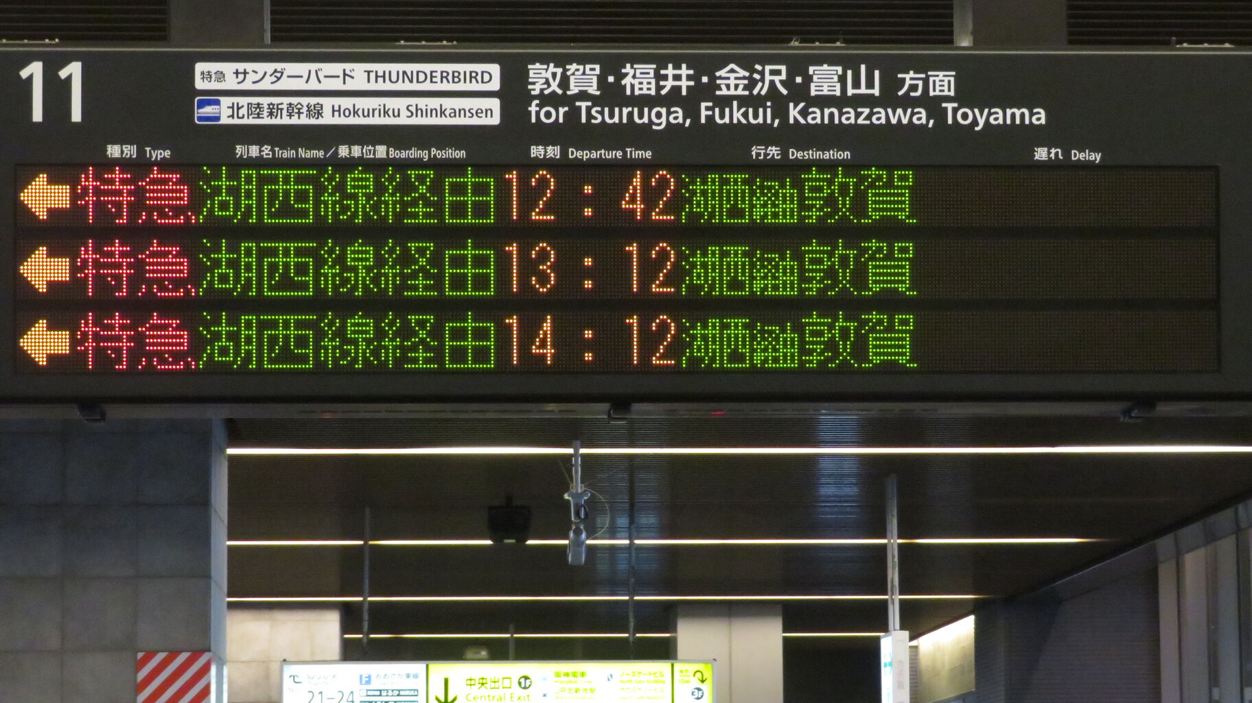2024年7月、「大阪駅の発車標に 『停車中』 表示が出るようになった」 と情報提供を頂いたので、撮りに行ってきました。