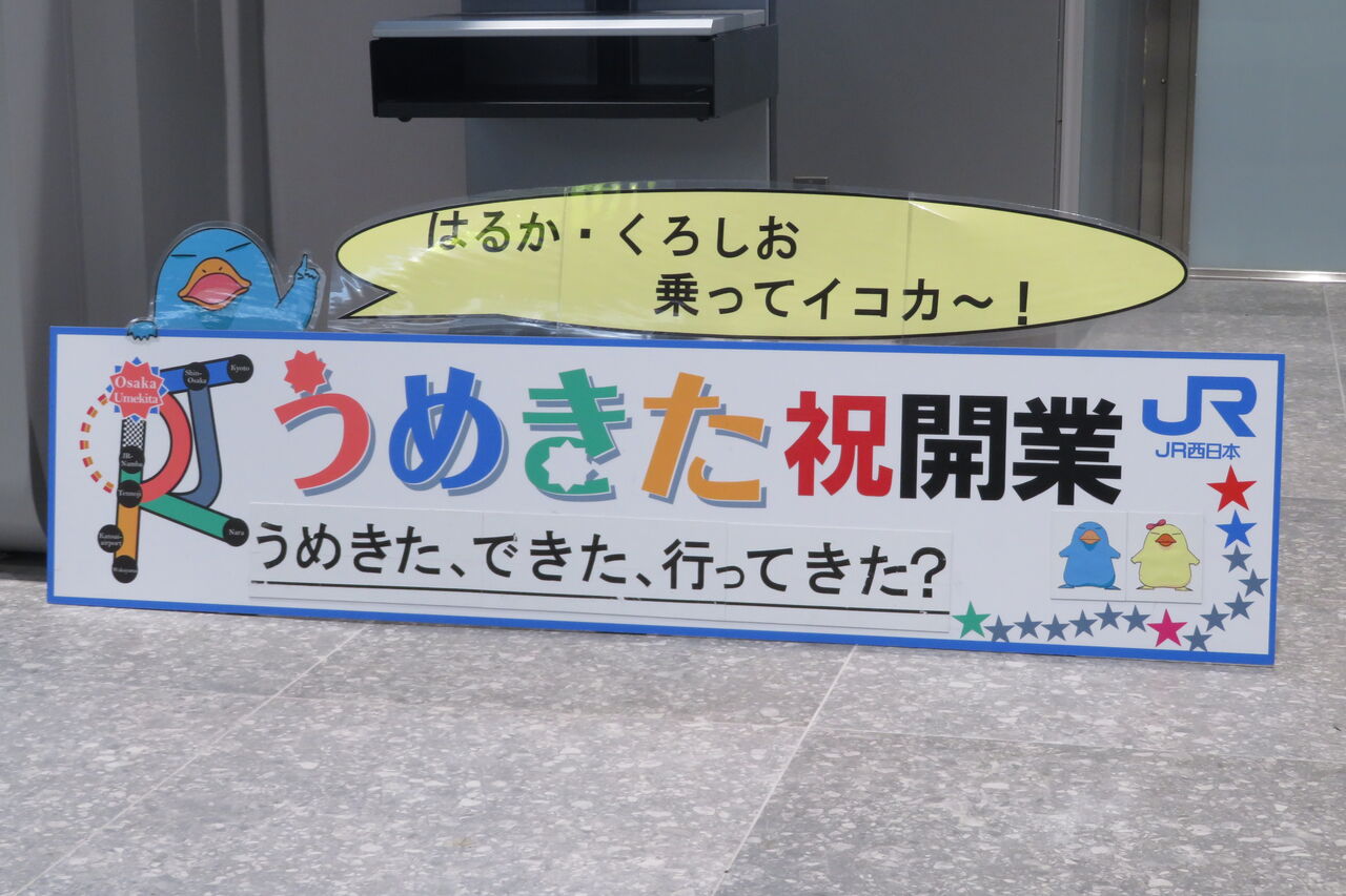 4月1日に訪れた時、「うめきた祝開業」 のボードは顔認証改札機の隣にありましたが、翌日訪れると 顔出し看板の手前に移設されていました。