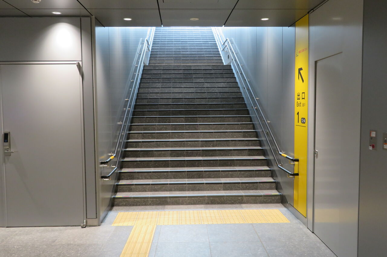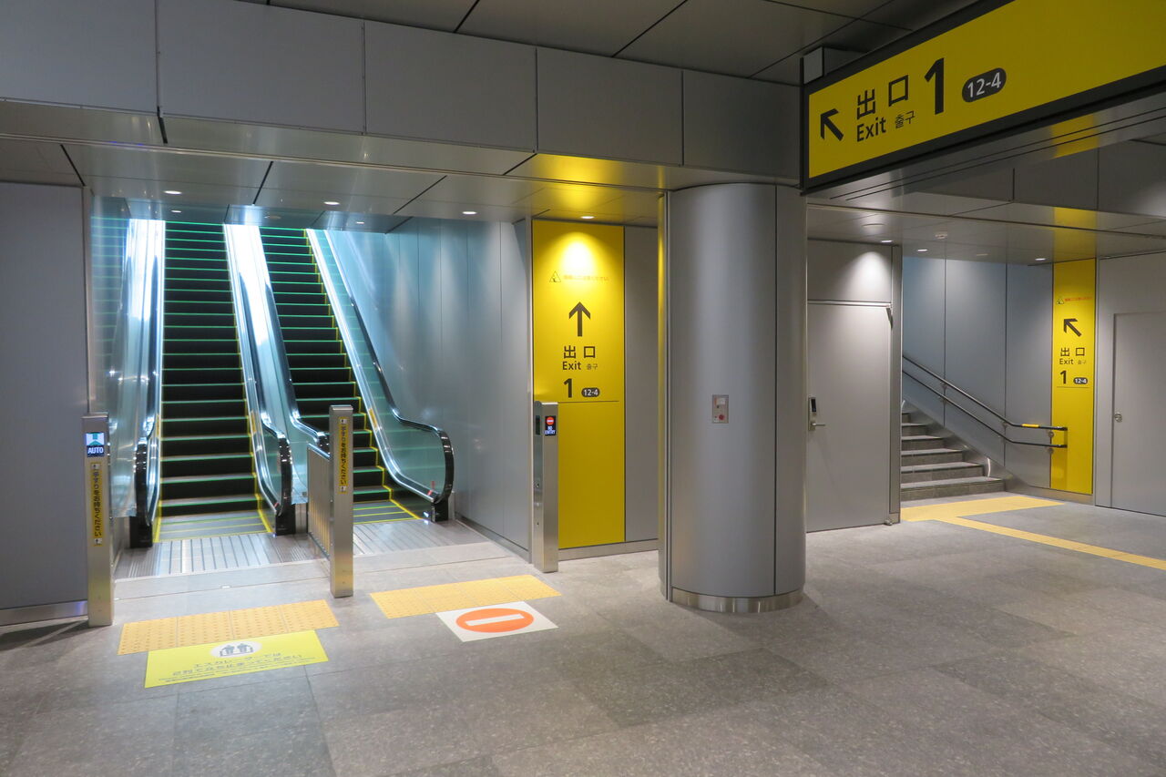 2023年4月現在は 1階(外)と 地下の改札外コンコースを結ぶだけですが、将来的には ビルが建てられて 2階以上へ行けるようになるでしょう。