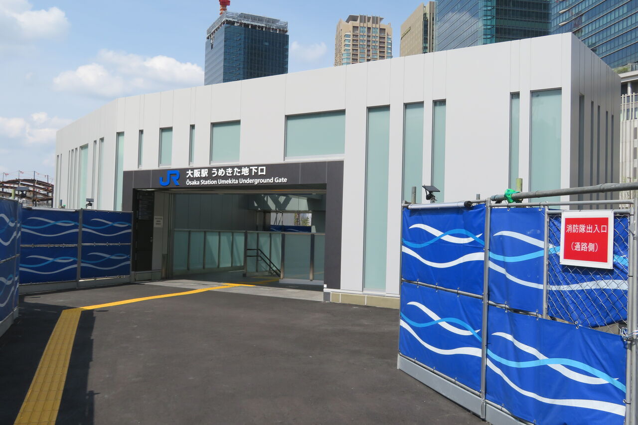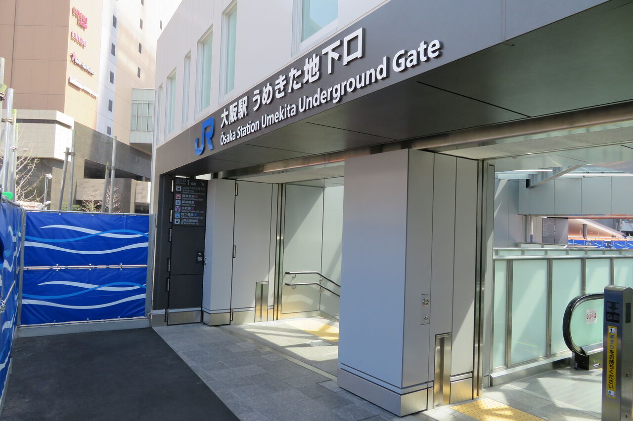 さらに進んでいくと、うめきた地下口の駅舎が見えてきました。