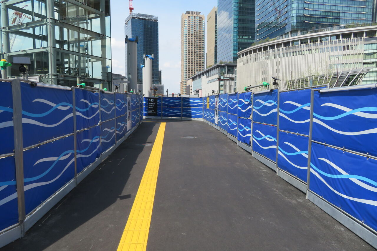 2023年4月現在は、工事中のため 東側(グランフロント大阪方面)へ通り抜けできないのです。