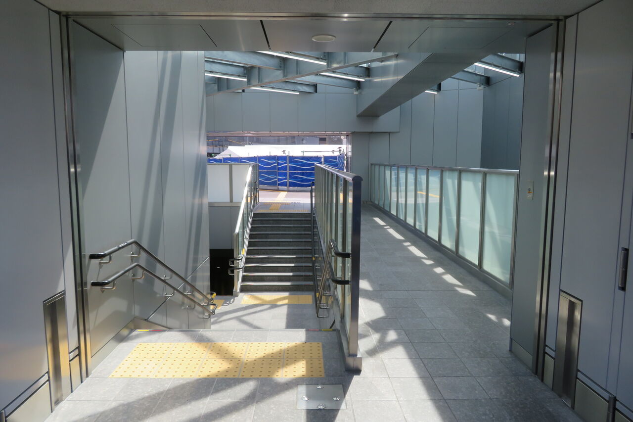 交差点から駅舎に向かう途中にあった あのエレベーターと階段が、ここにつながっているのです。