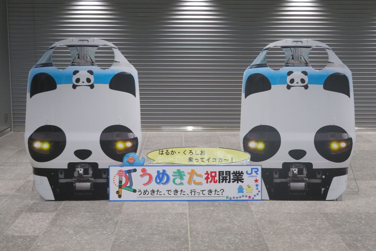 改札外コンコースの一番奥には、パンダくろしおの顔出し看板があります。