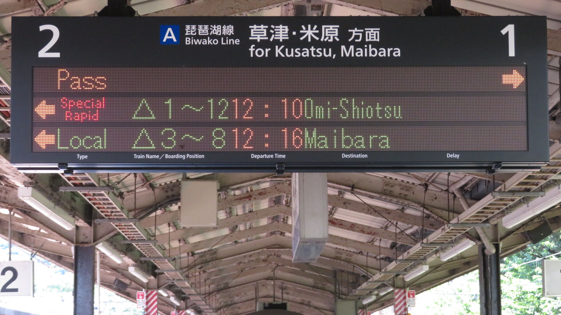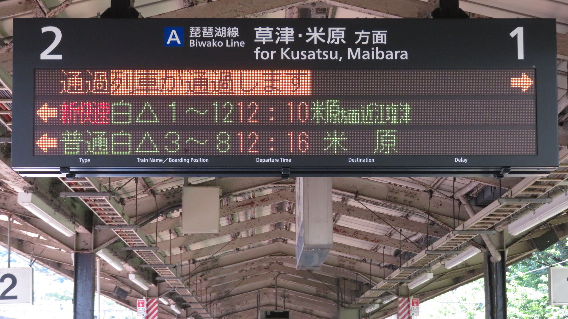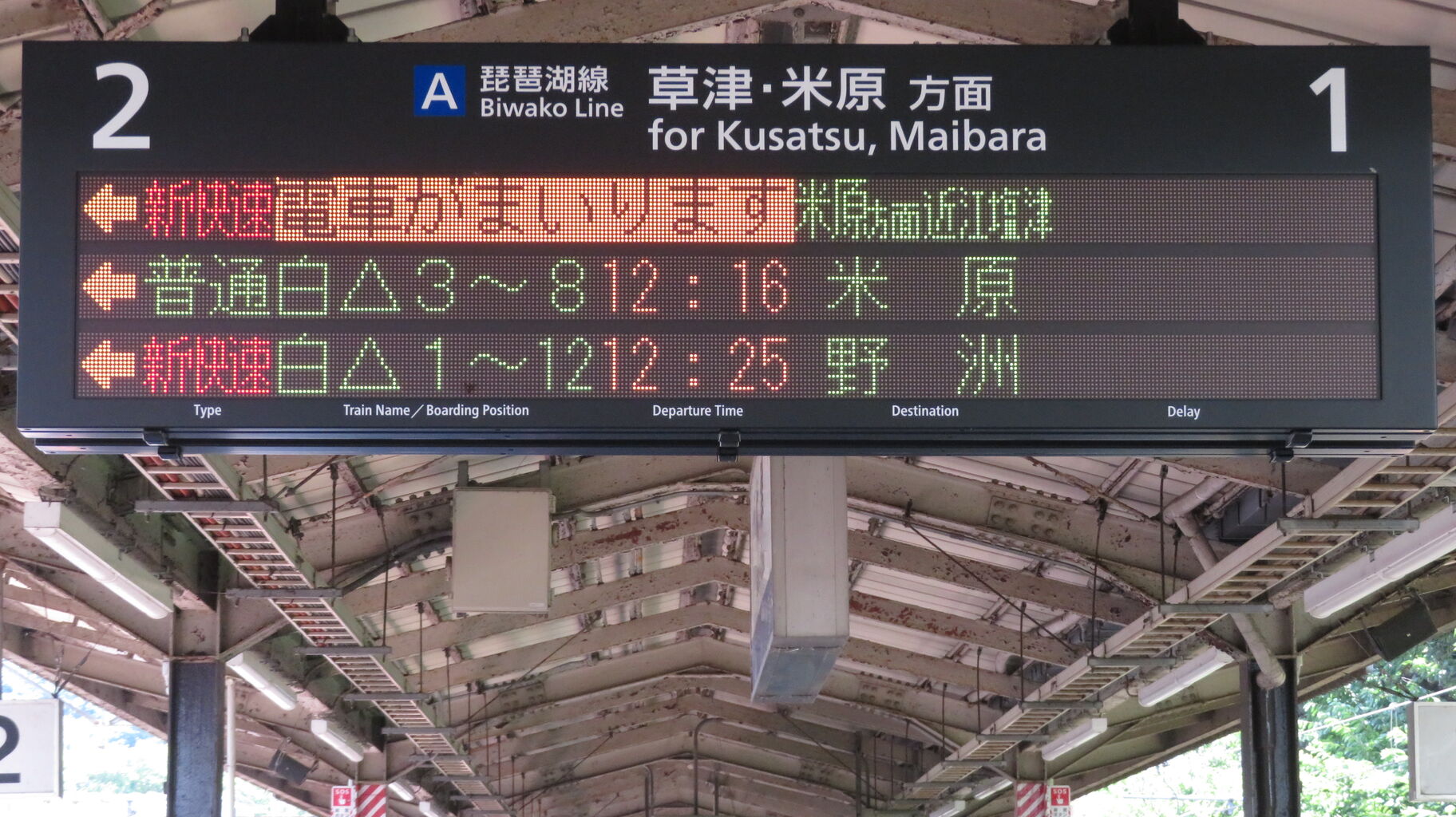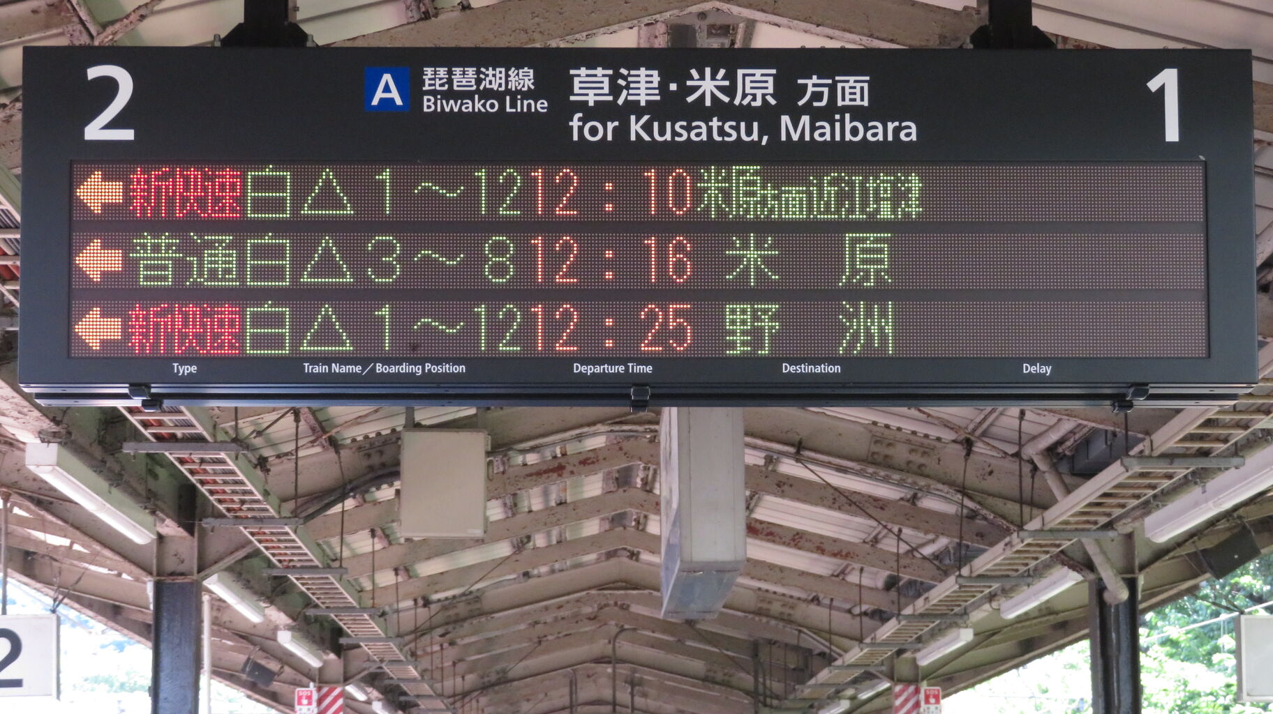 まずは、1・2番のりば(草津・米原方面ホーム)に設置されている発車標から。