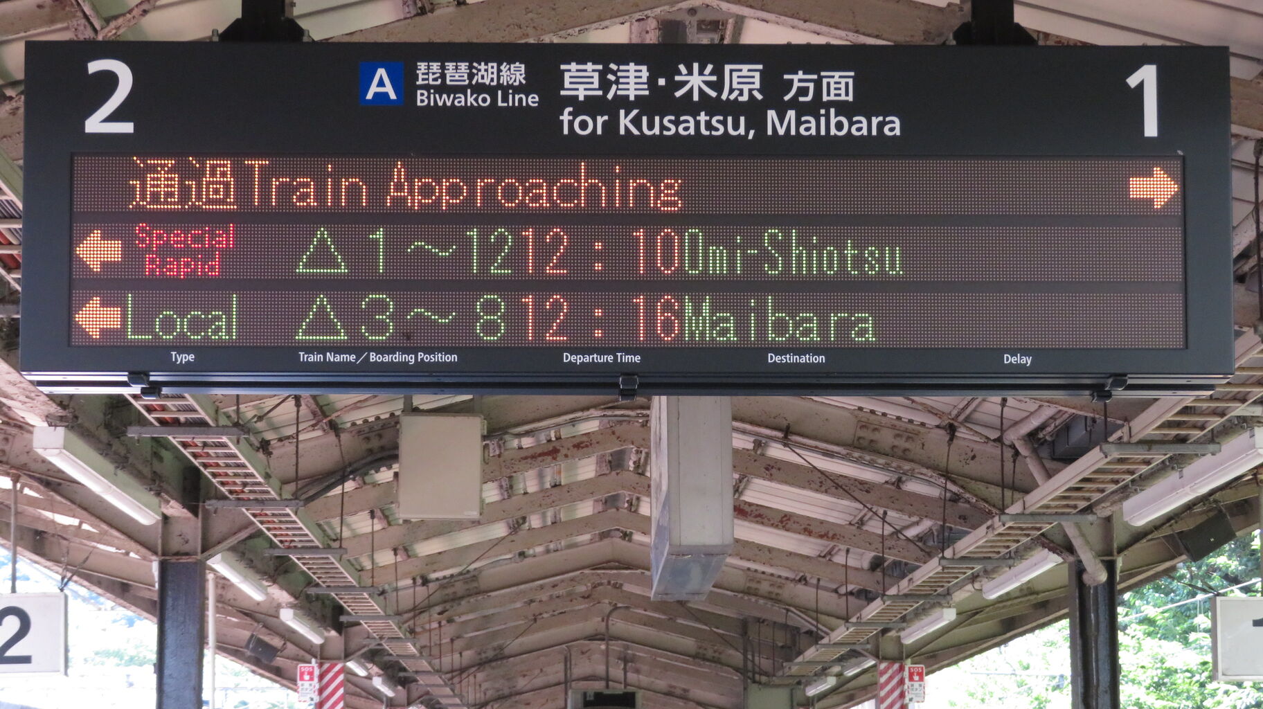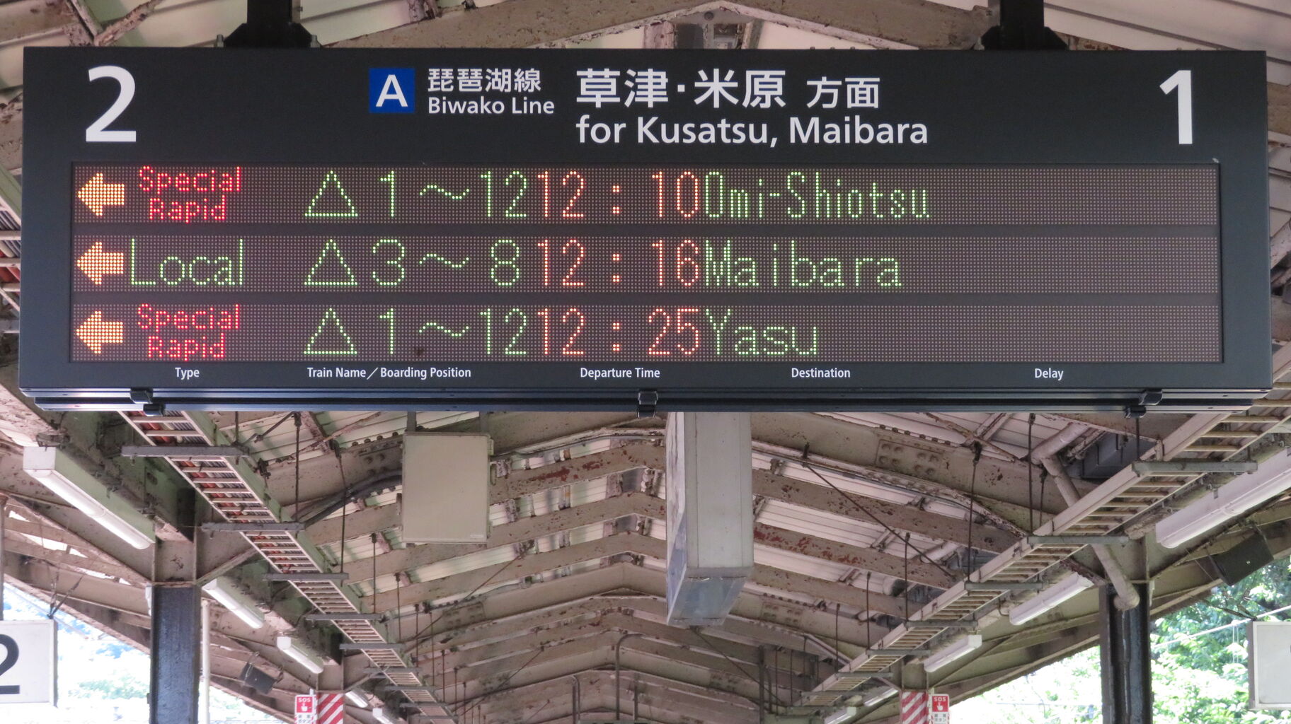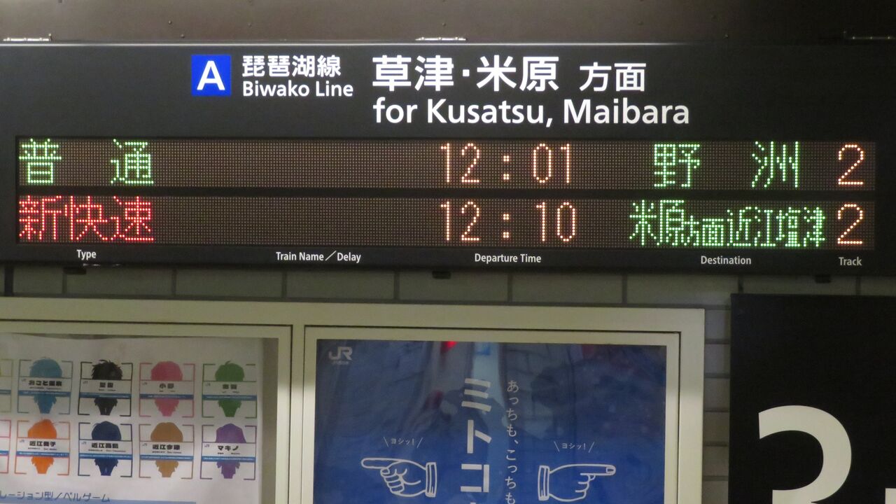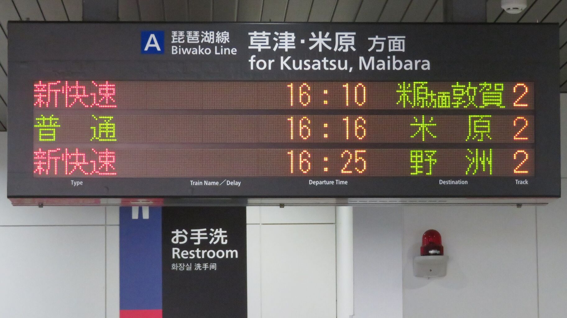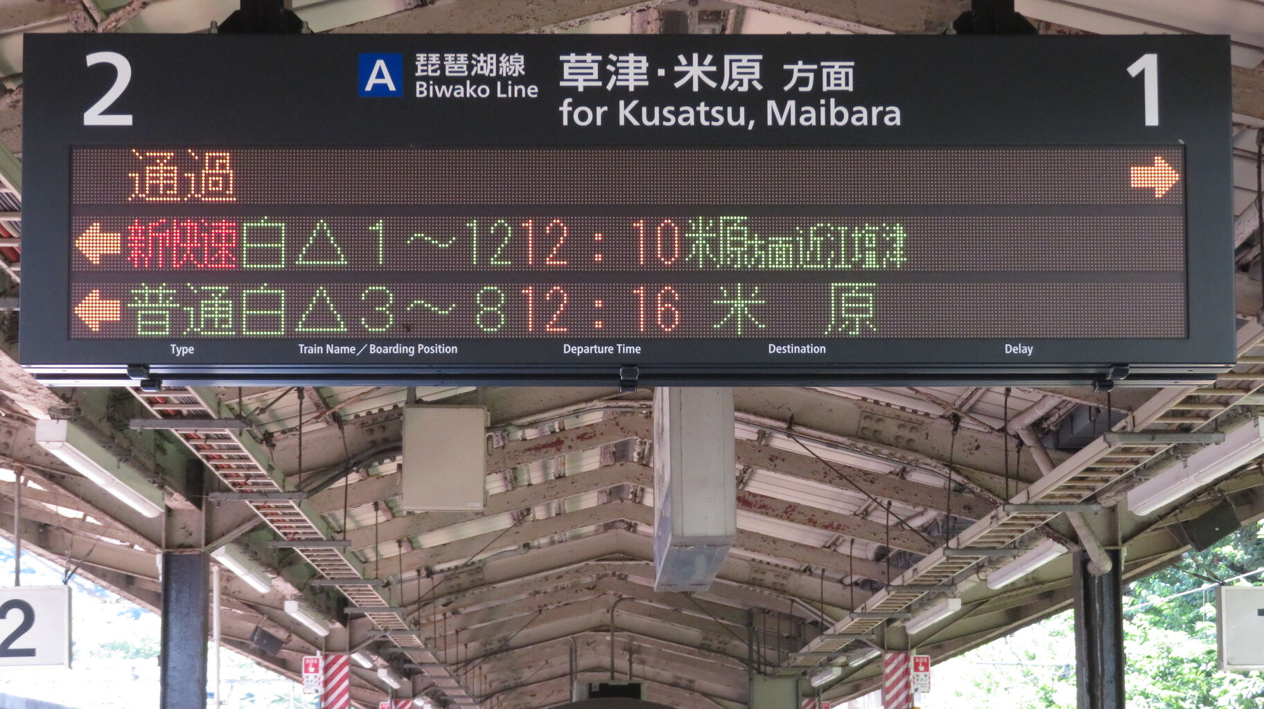 まずは、1・2番のりば(草津・米原方面ホーム)に設置されている発車標から。