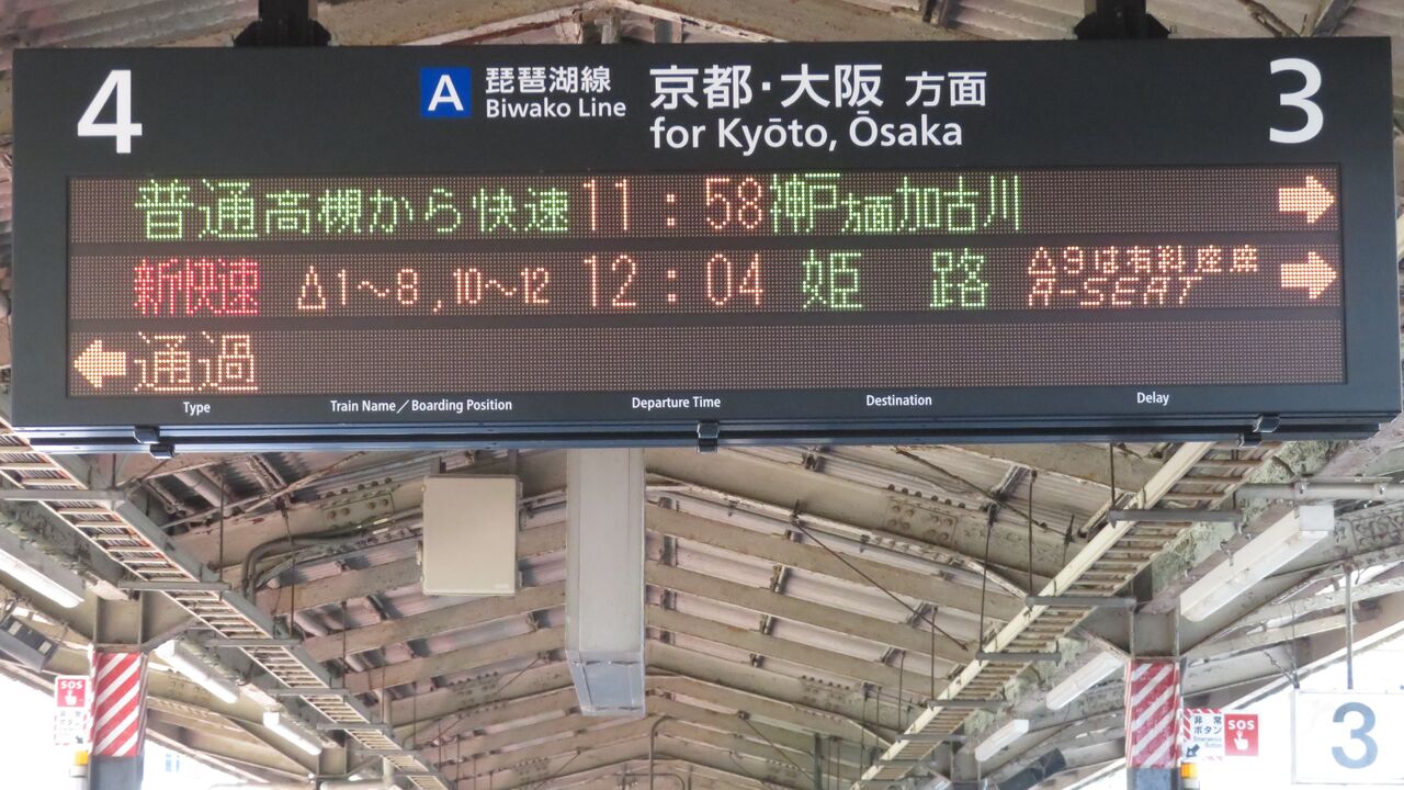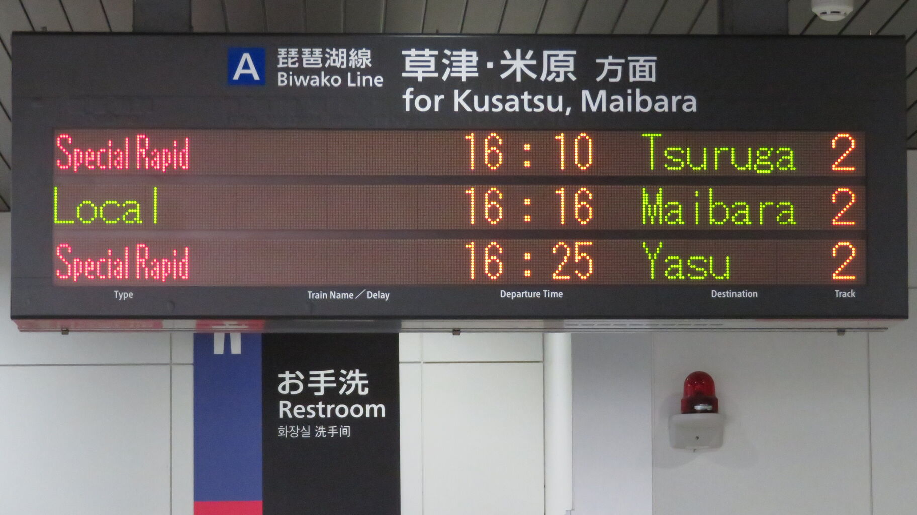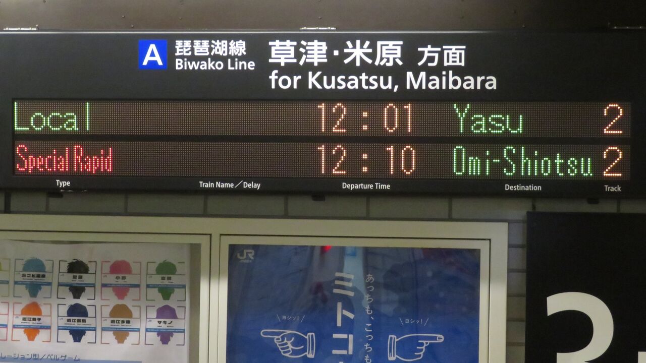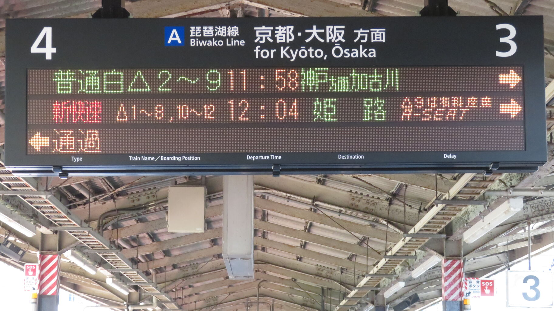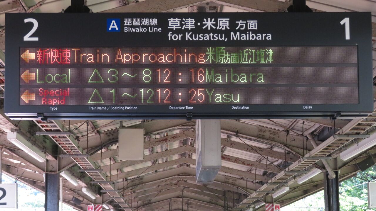 まずは、1・2番のりば(草津・米原方面ホーム)に設置されている発車標から。