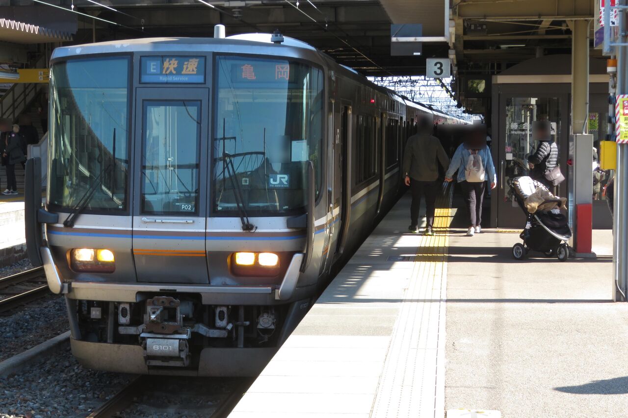 3番のりばに到着した快速 亀岡行き(223系)を撮影。