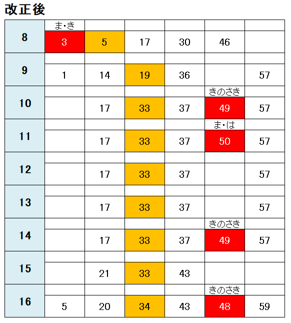 そしてこちらが、改正後の時刻表です。