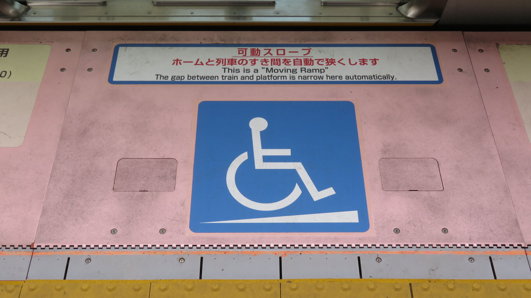 列車が到着すると、これが動いてホームと列車の段差・隙間を埋め、スロープ機能を果たします。