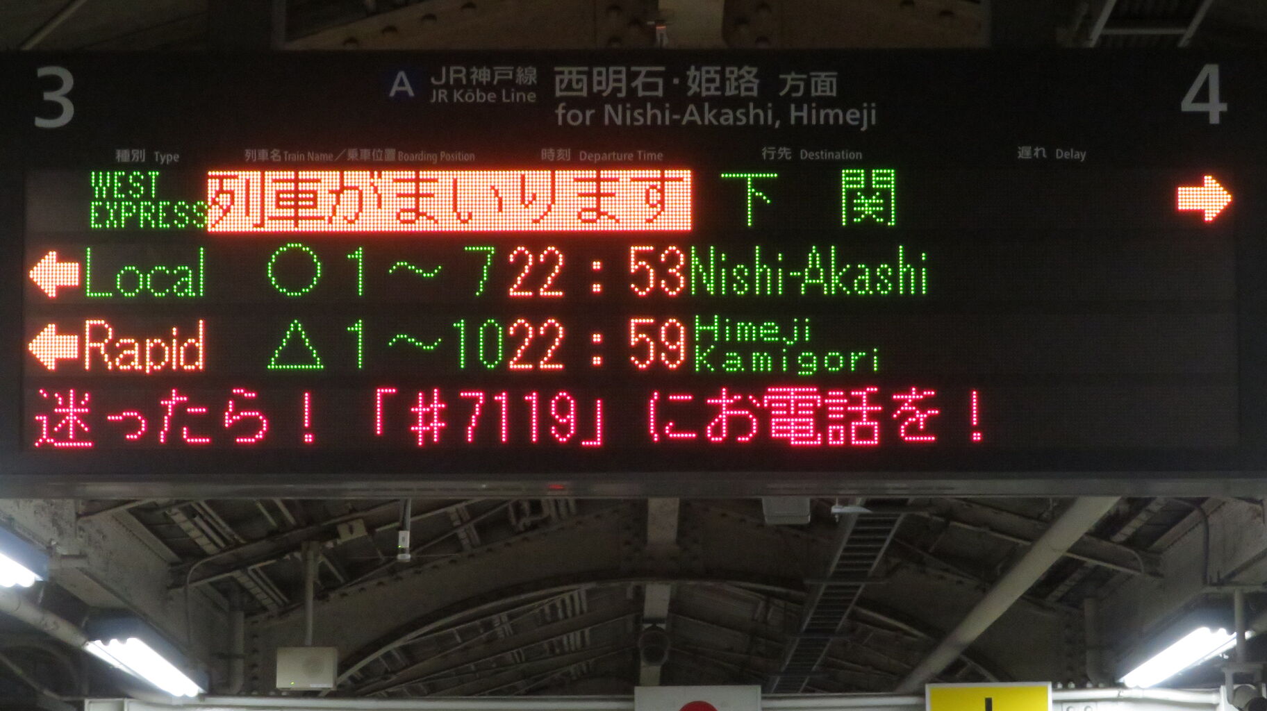 以上、三ノ宮駅で撮影した 「WEST EXPRESS 銀河」 下関行きを紹介しました。