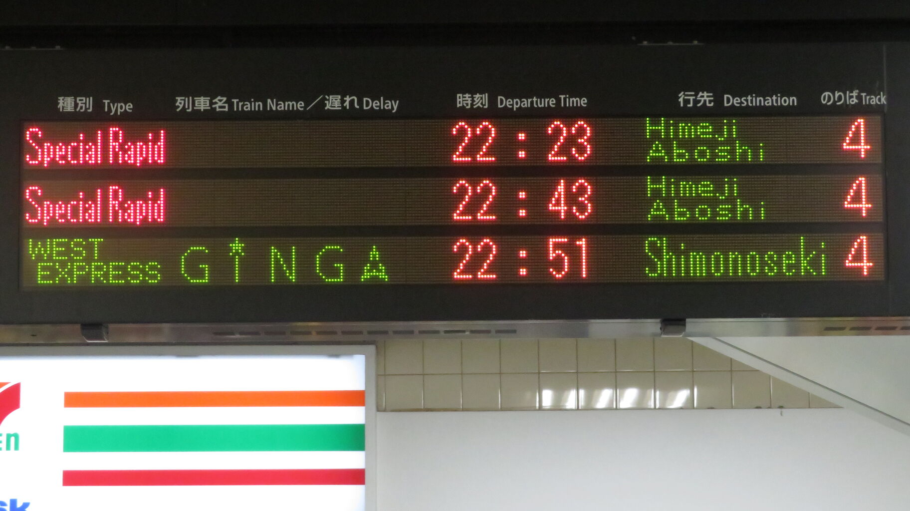 一番下の段に、「WEST EXPRESS 銀河」 下関行きの表示が出ました。