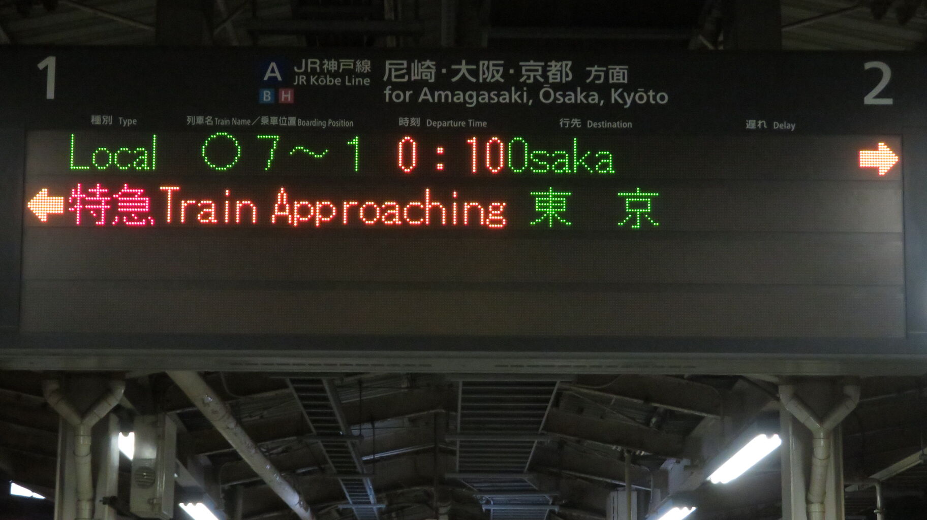 ホームへ上がって、1・2番のりばに設置されている発車標を撮影。