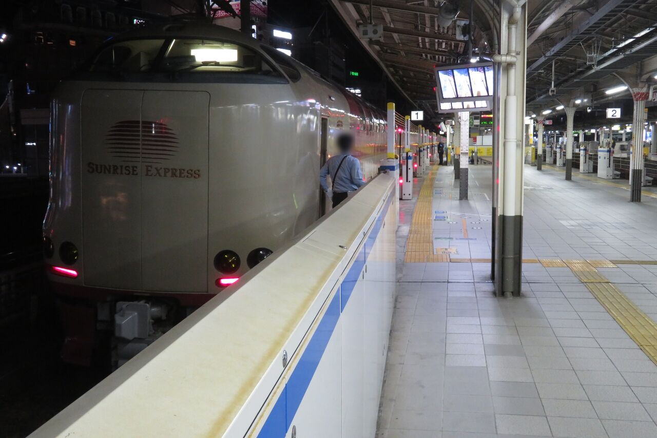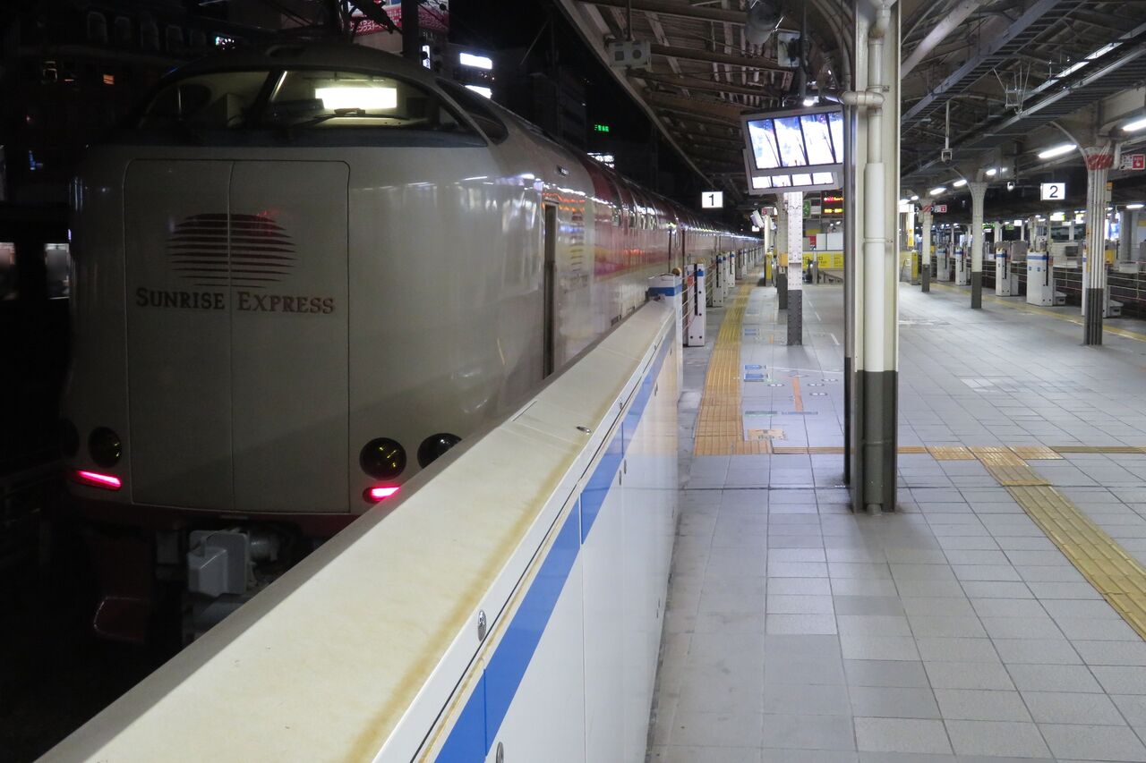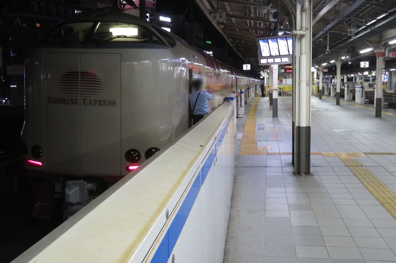 1番のりばに到着した寝台特急 「サンライズ瀬戸・出雲」 東京行き。