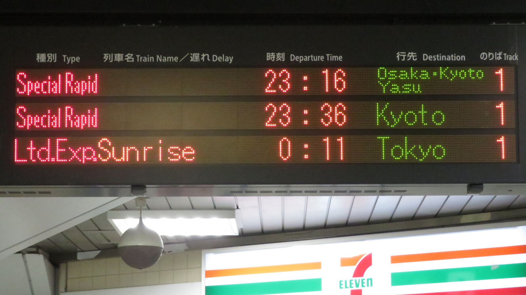 一番下の段に、寝台特急 「サンライズ瀬戸・出雲」 東京行きの表示が出ました。