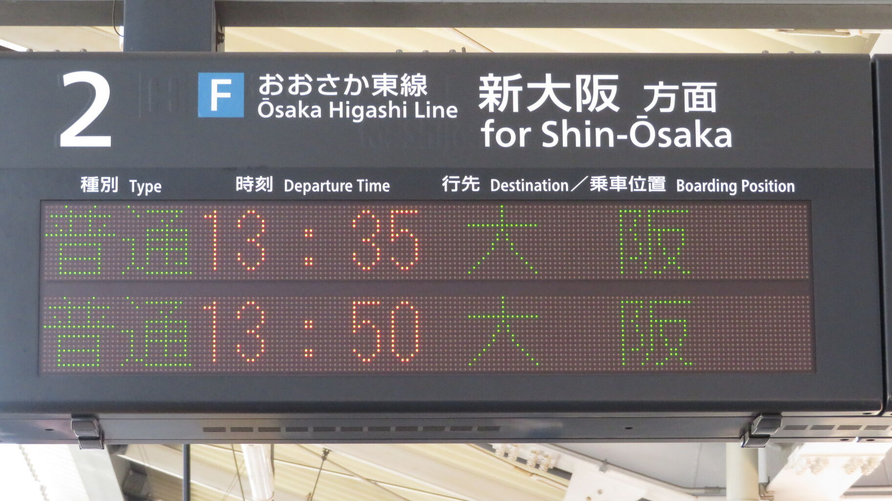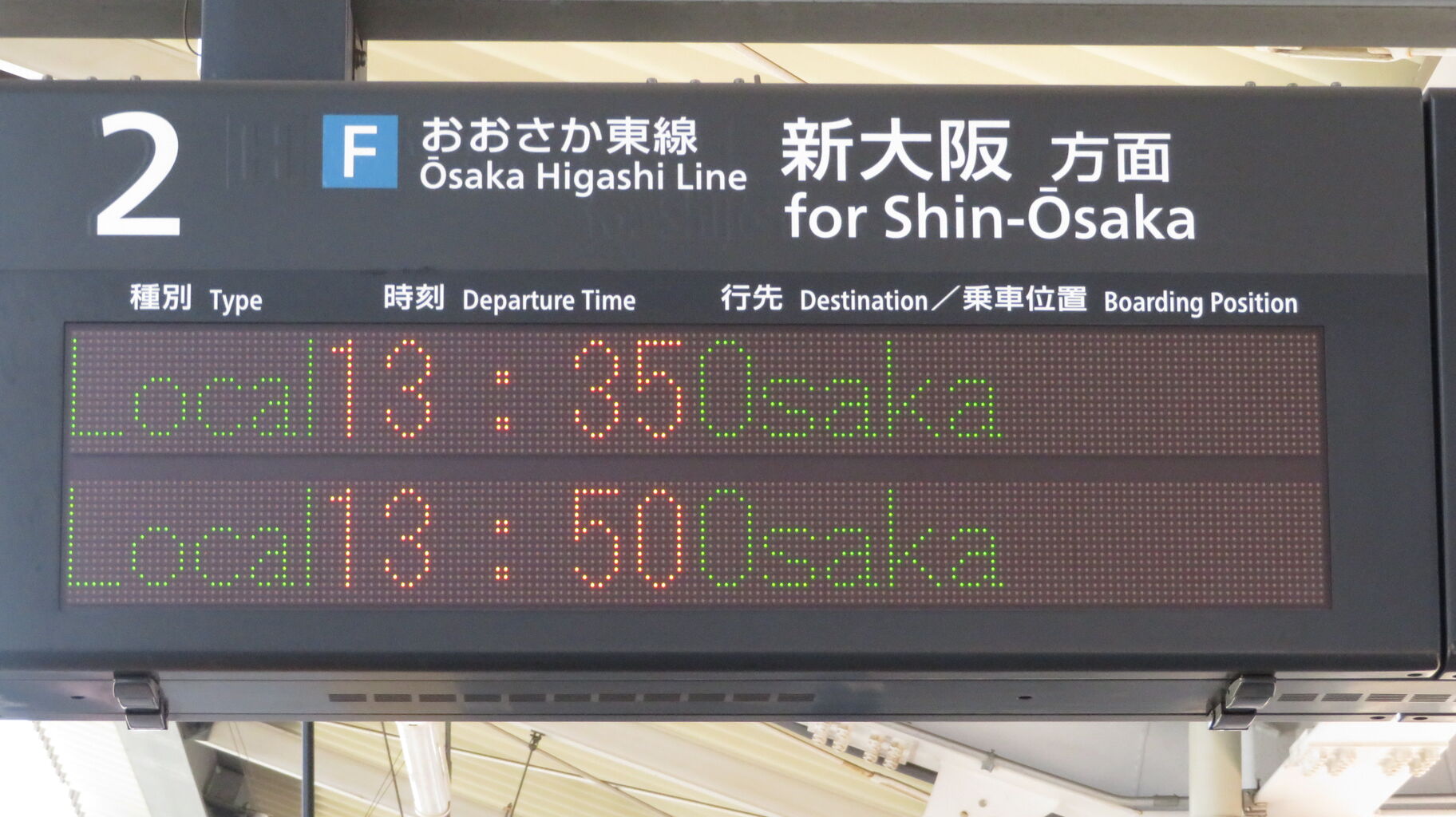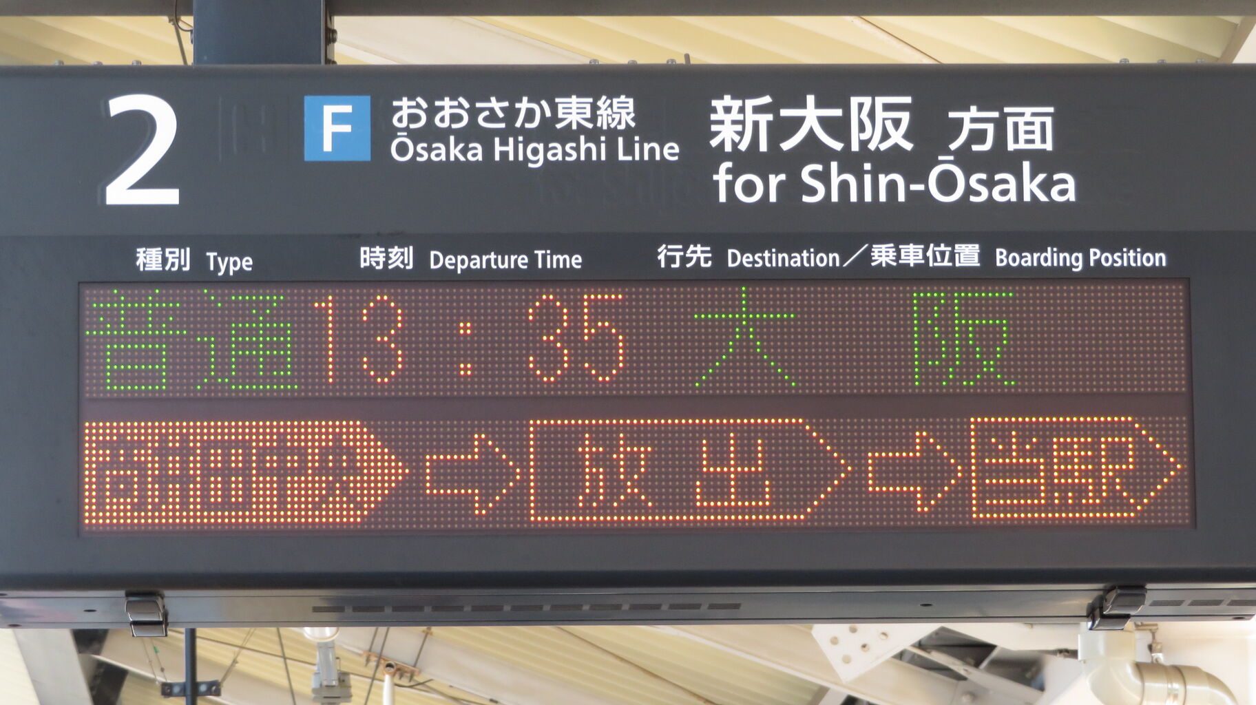続いて、2番のりばに設置されている発車標を撮影。