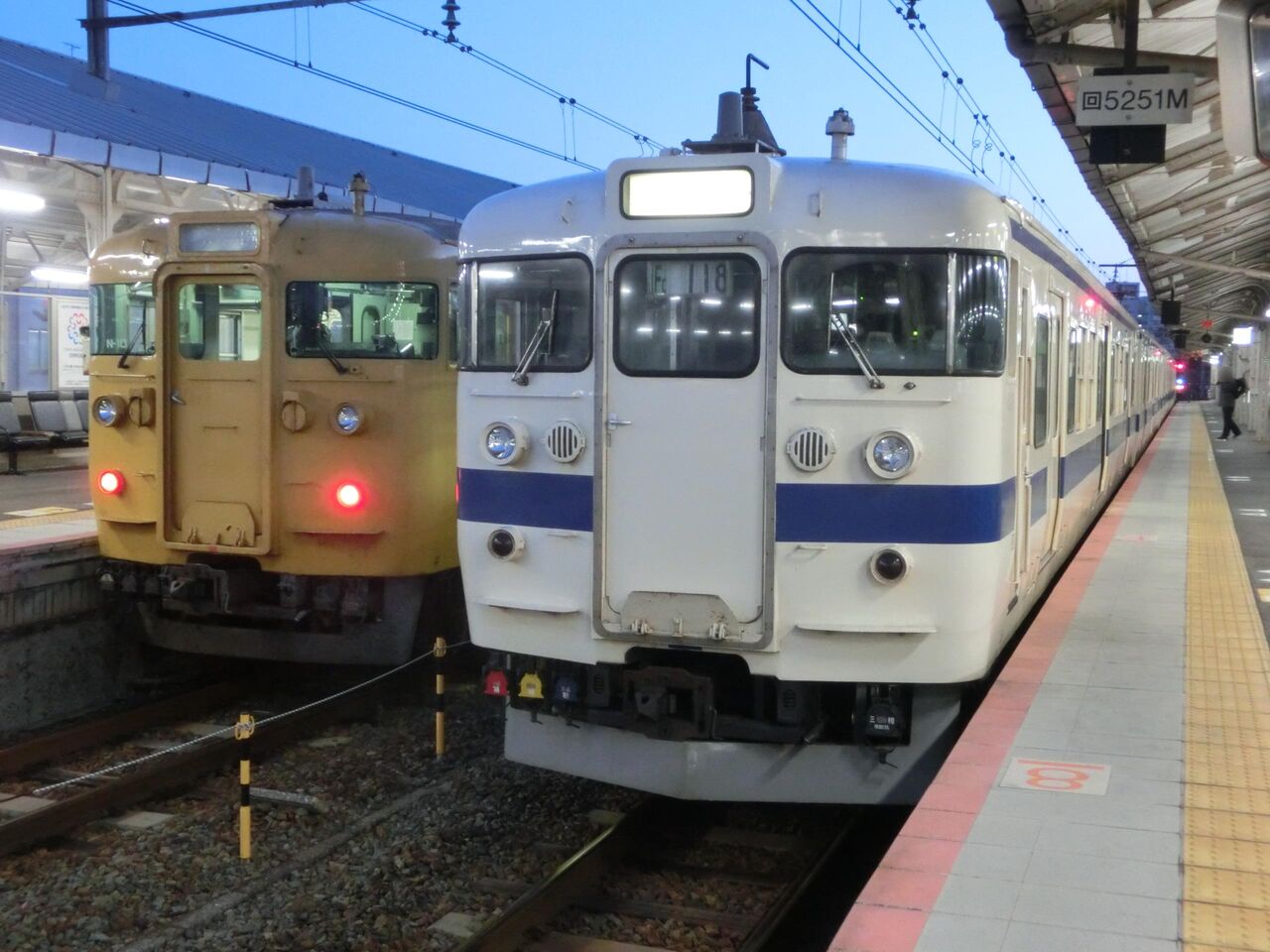 今度は、8番のりばに停車中の普通 小月行き(115系)も入れて撮影。