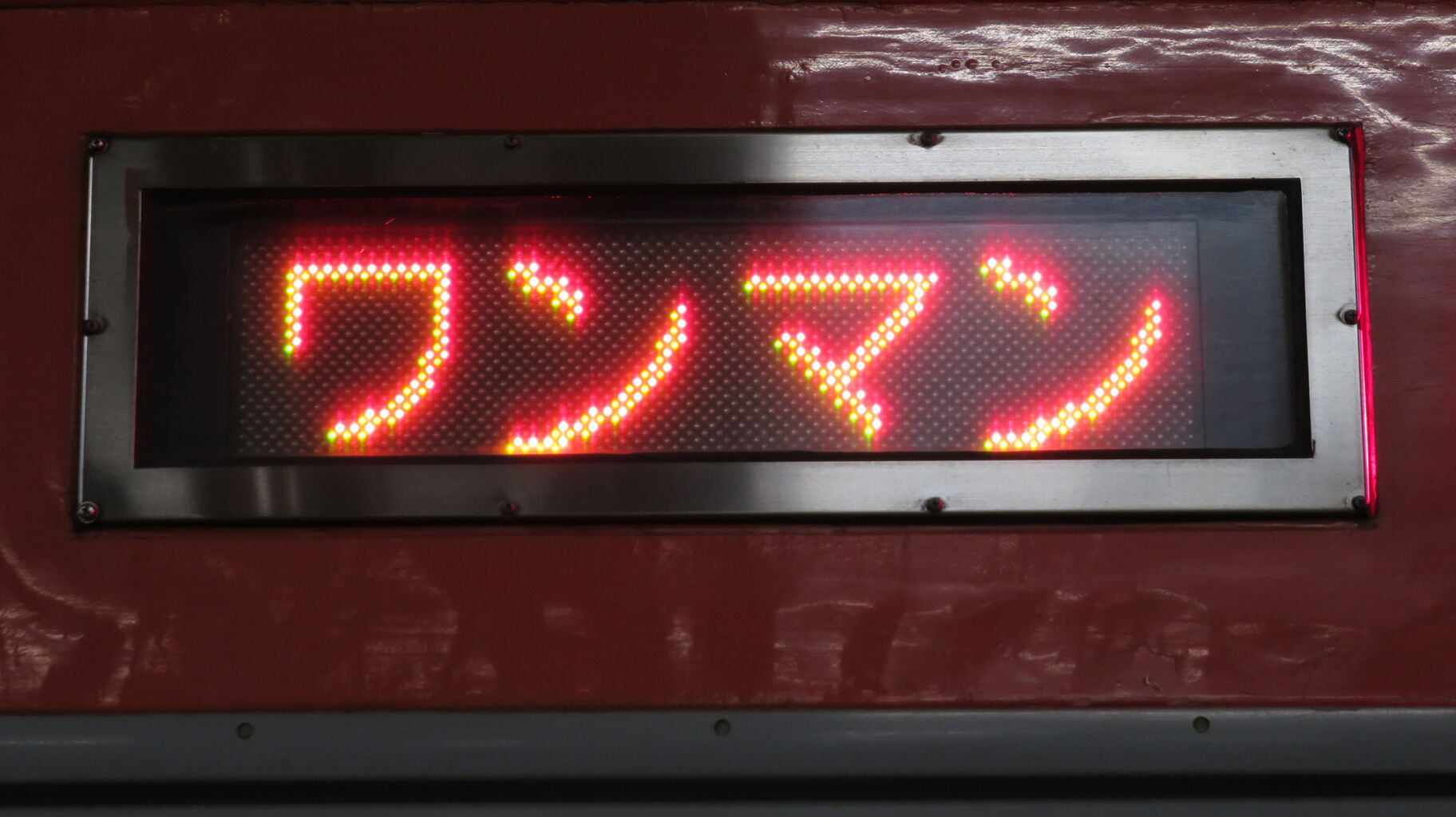 「滝部」 と 「ワンマン」 が交互に表示されます。