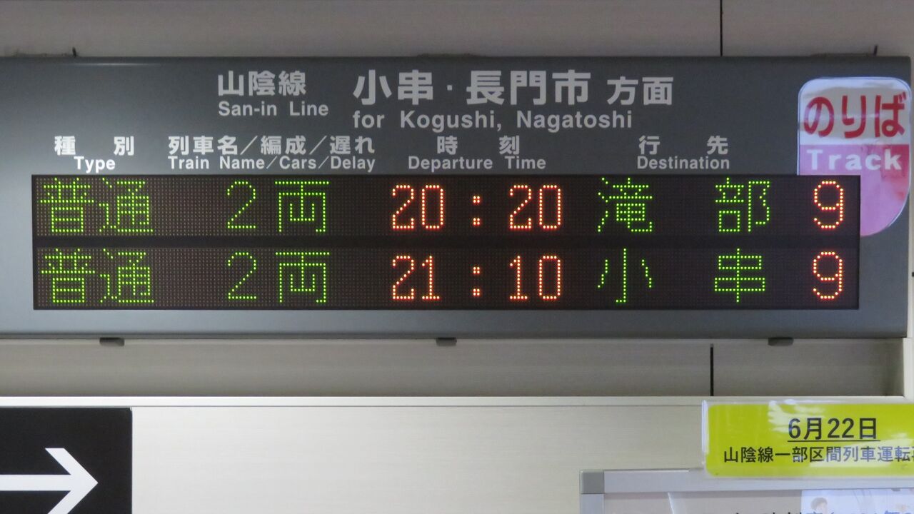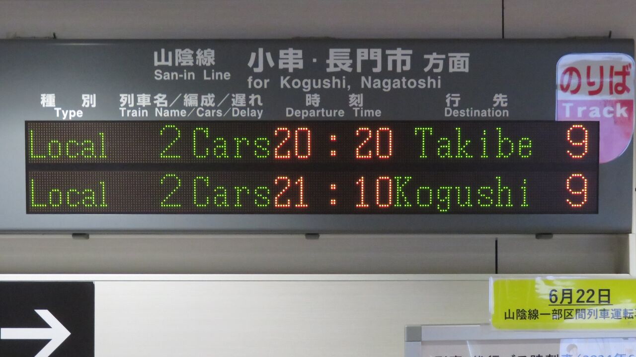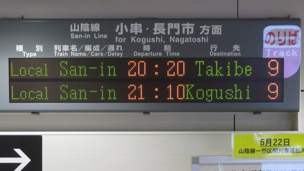 列車名欄には、両数と 「山陰方面」 が交互に表示されます。