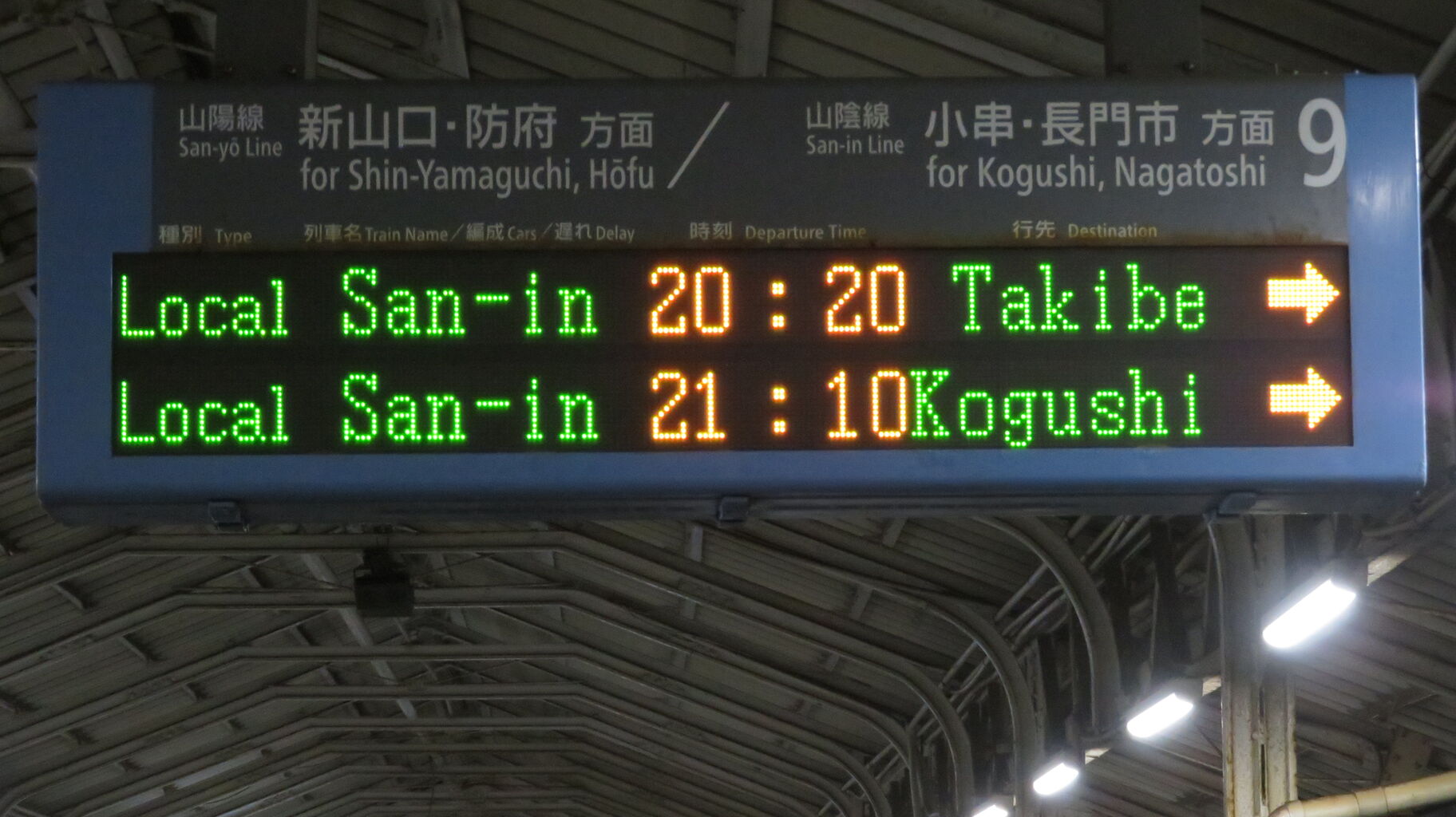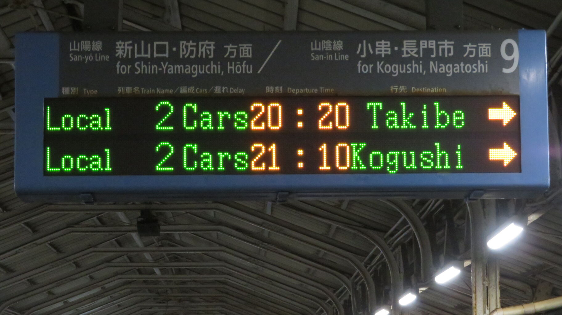 (下関5:40発、6:40発、7:26発、14:31発、16:11発、17:26発、18:39発、20:20発)