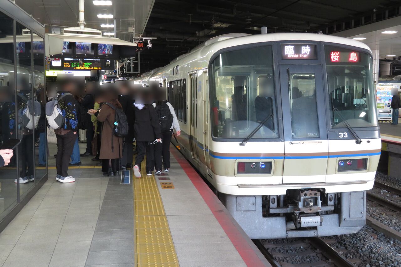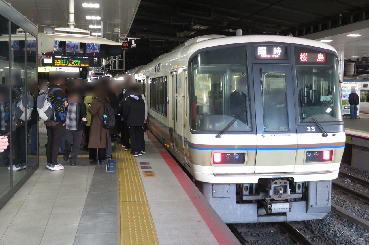 今回、2025年3月に新大阪駅で 221系の 「エキスポライナー」 桜島行きを撮影しました。