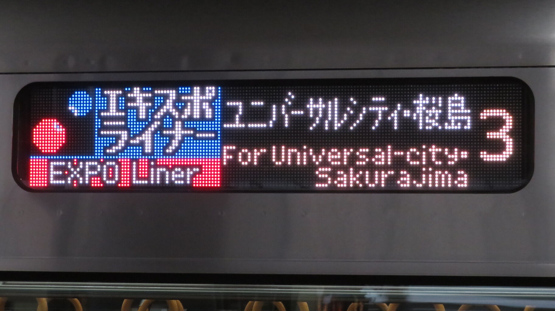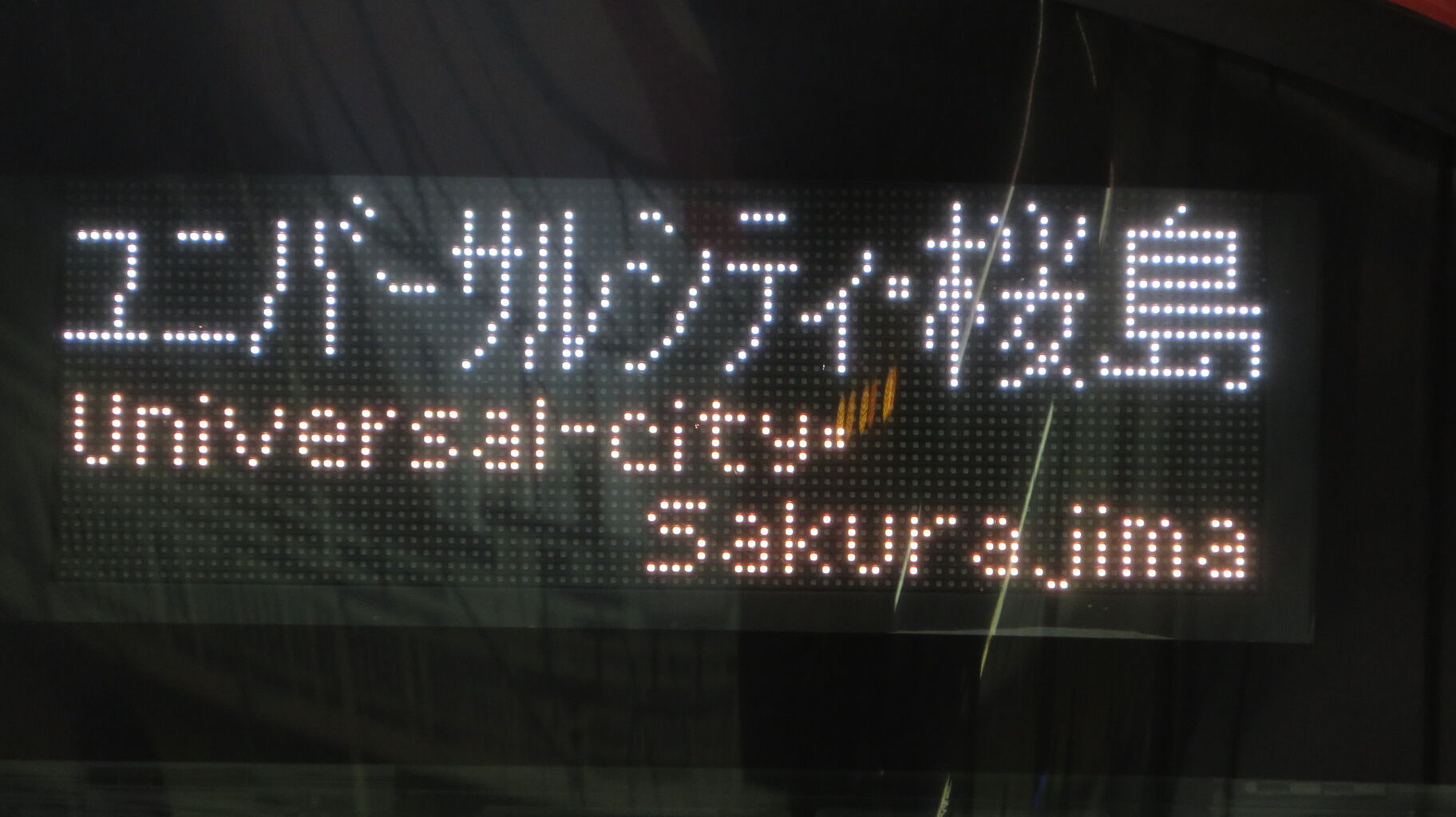 行き先表示は 「ユニバーサルシティ・桜島」 となっています。