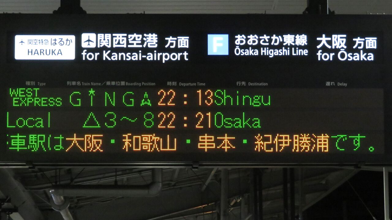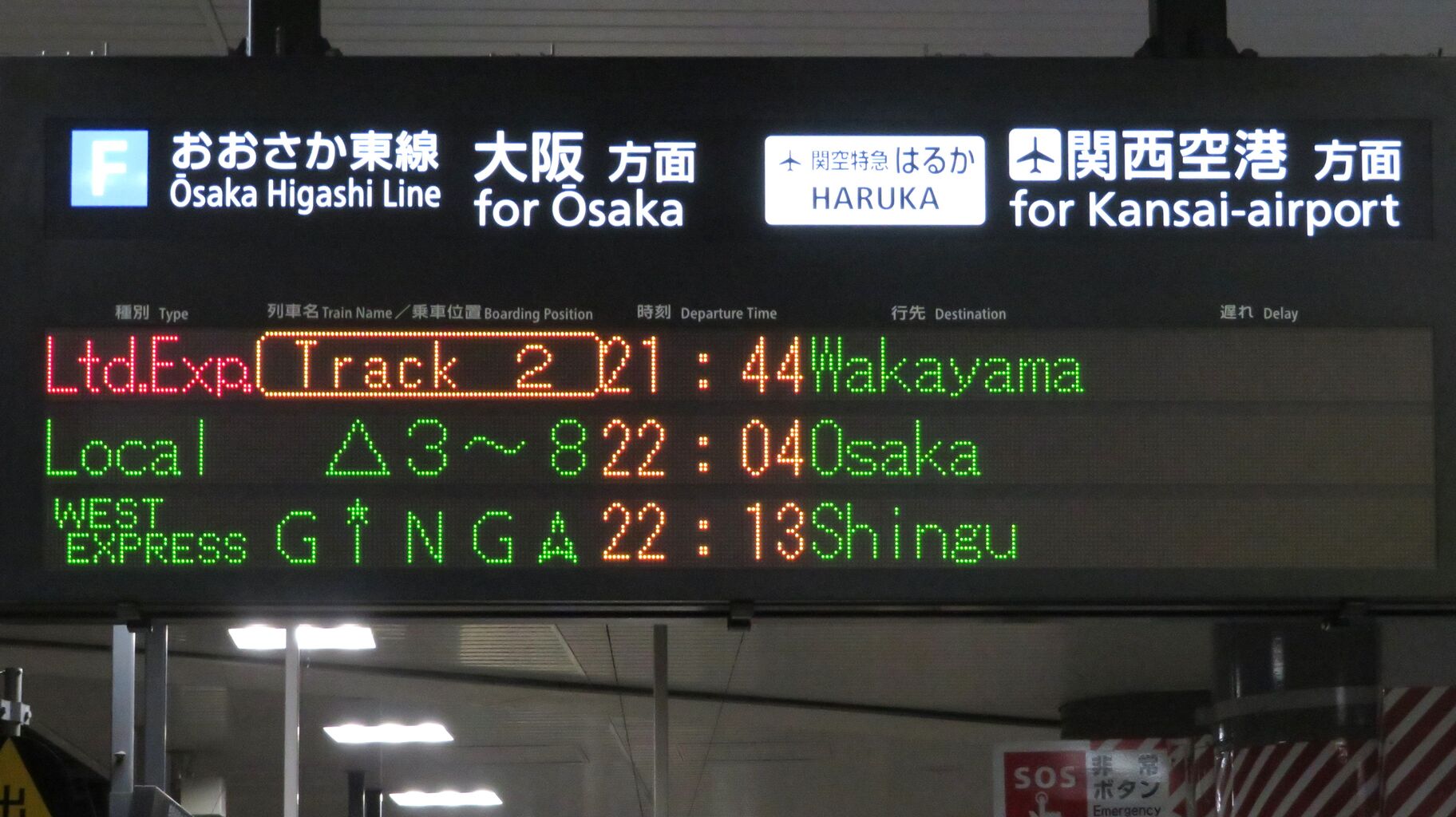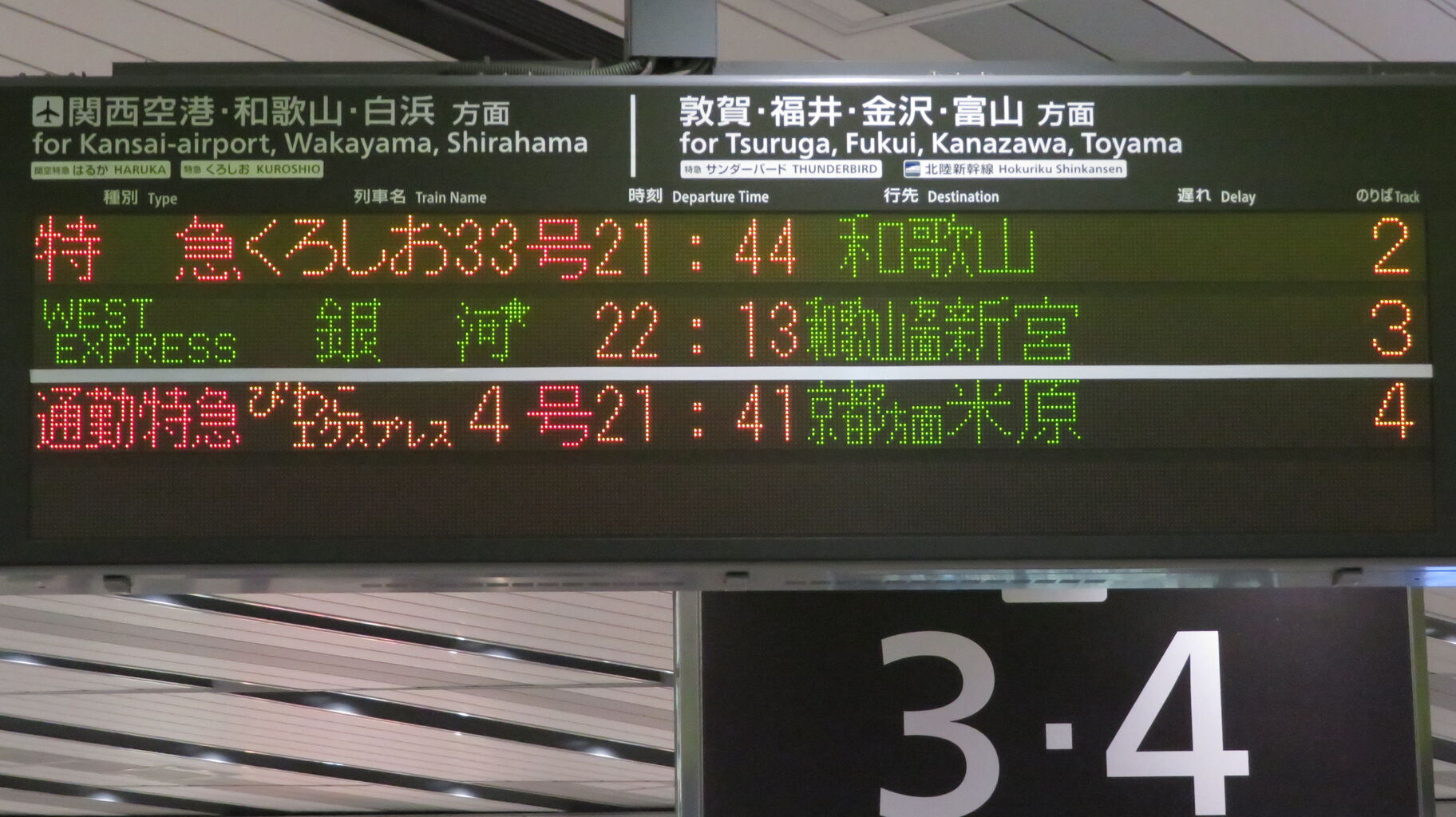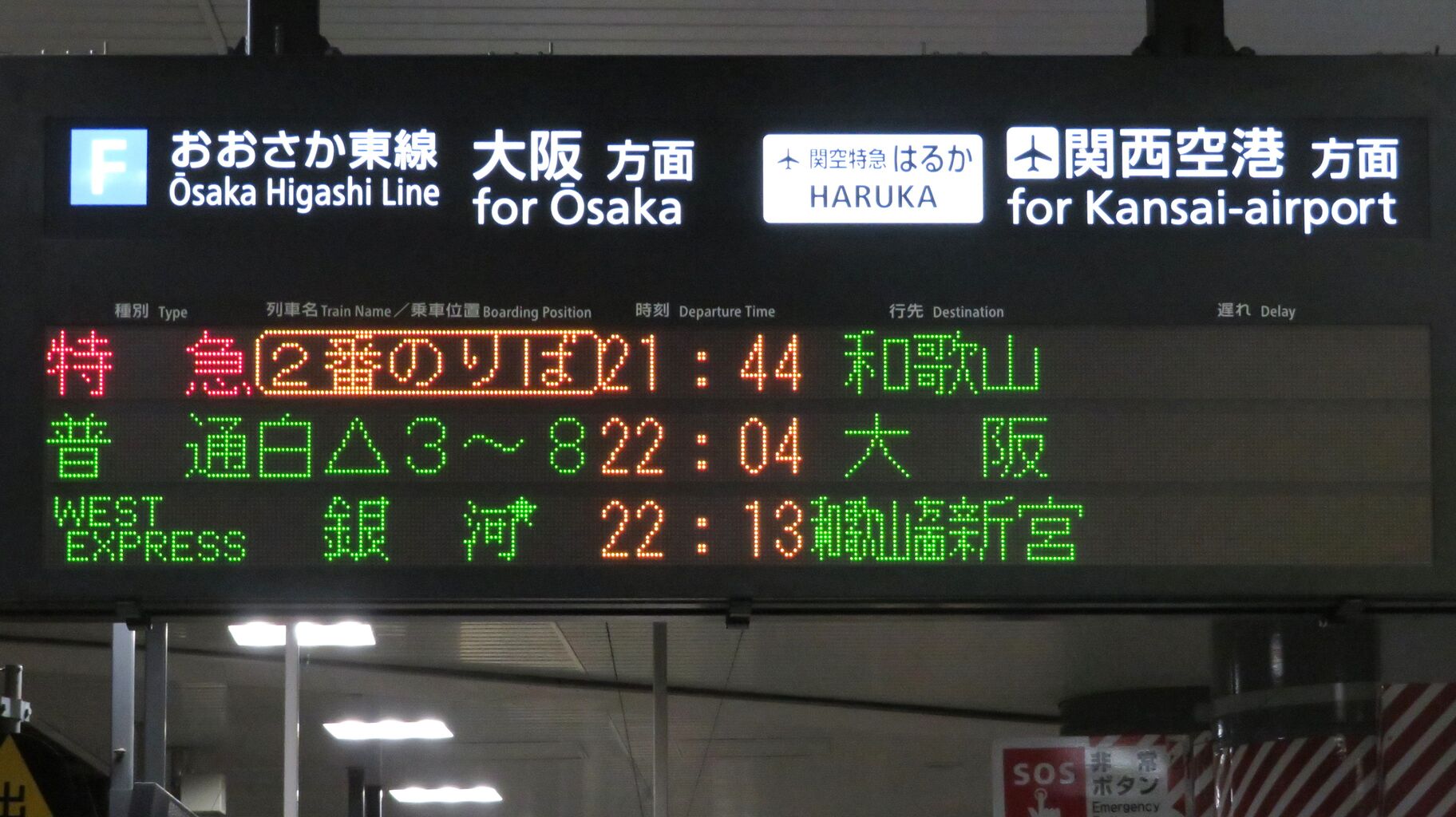 21時37分発の特急はるか56号 京都行きが発車すると、銀河の新宮行きが表示されました!
