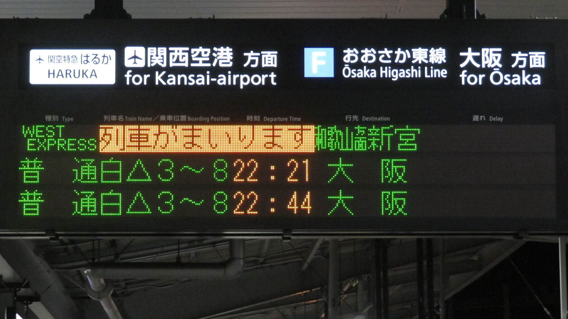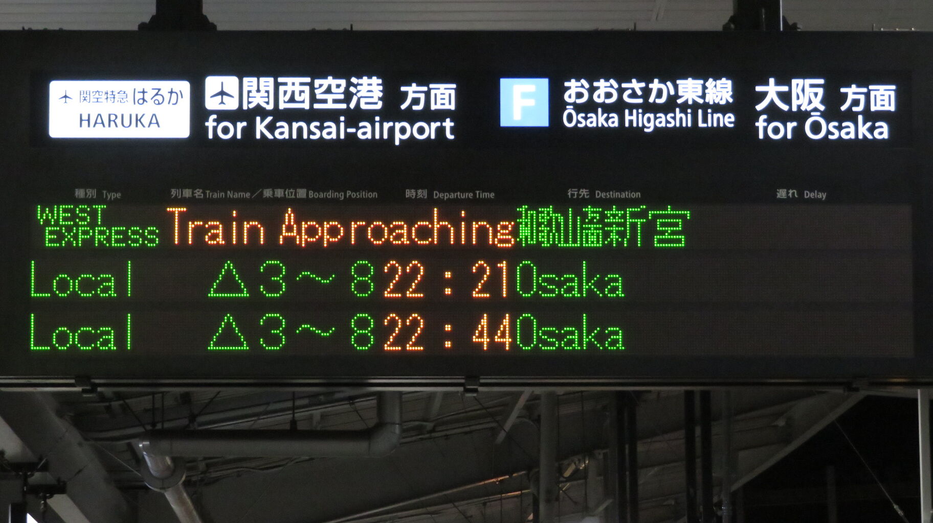 2023年10月に京都駅と大阪駅(地下ホーム)で撮った時は 行き先が表示されませんでしたが、今回は表示されました。