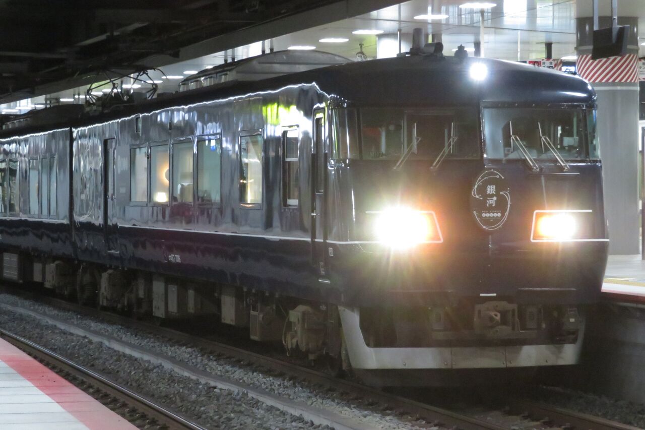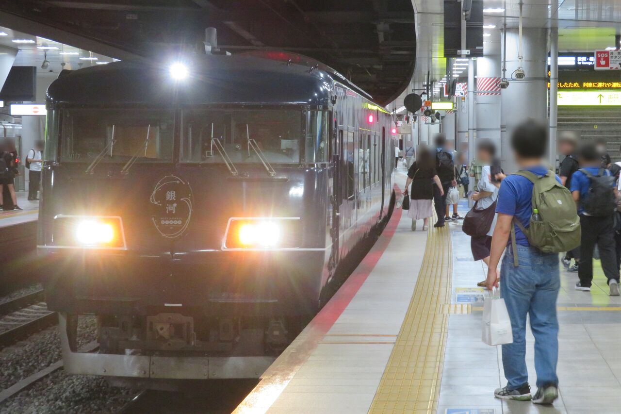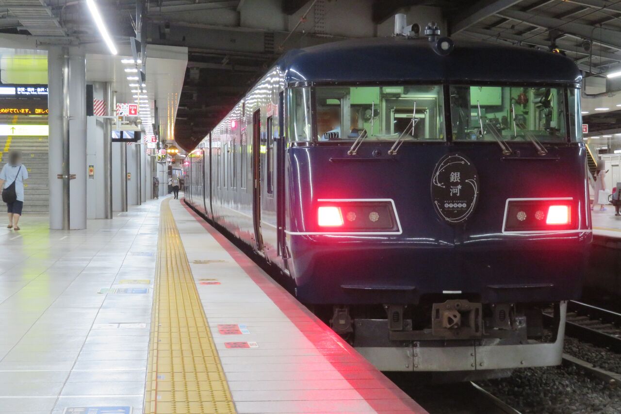 隣のホーム 5番のりばから、4番のりばに停車中の銀河を撮影。