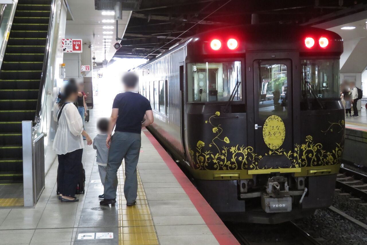 9番のりばに到着した観光列車 「はなあかり」 大阪行きを撮影。