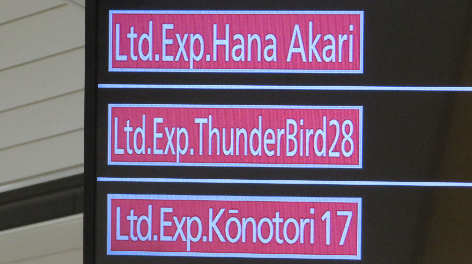 こちらも、一番上の段に 「はなあかり」 大阪行きが表示されました。