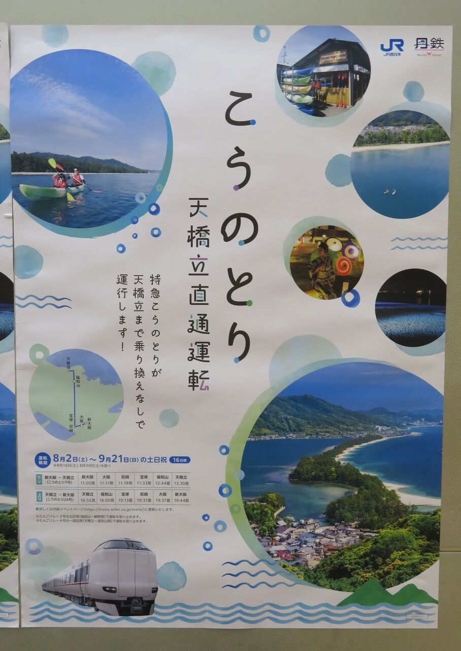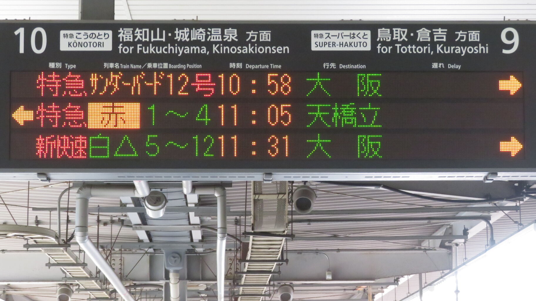 こちらも、一番下の段に特急こうのとり7号 「天橋立行き」 が表示されました。