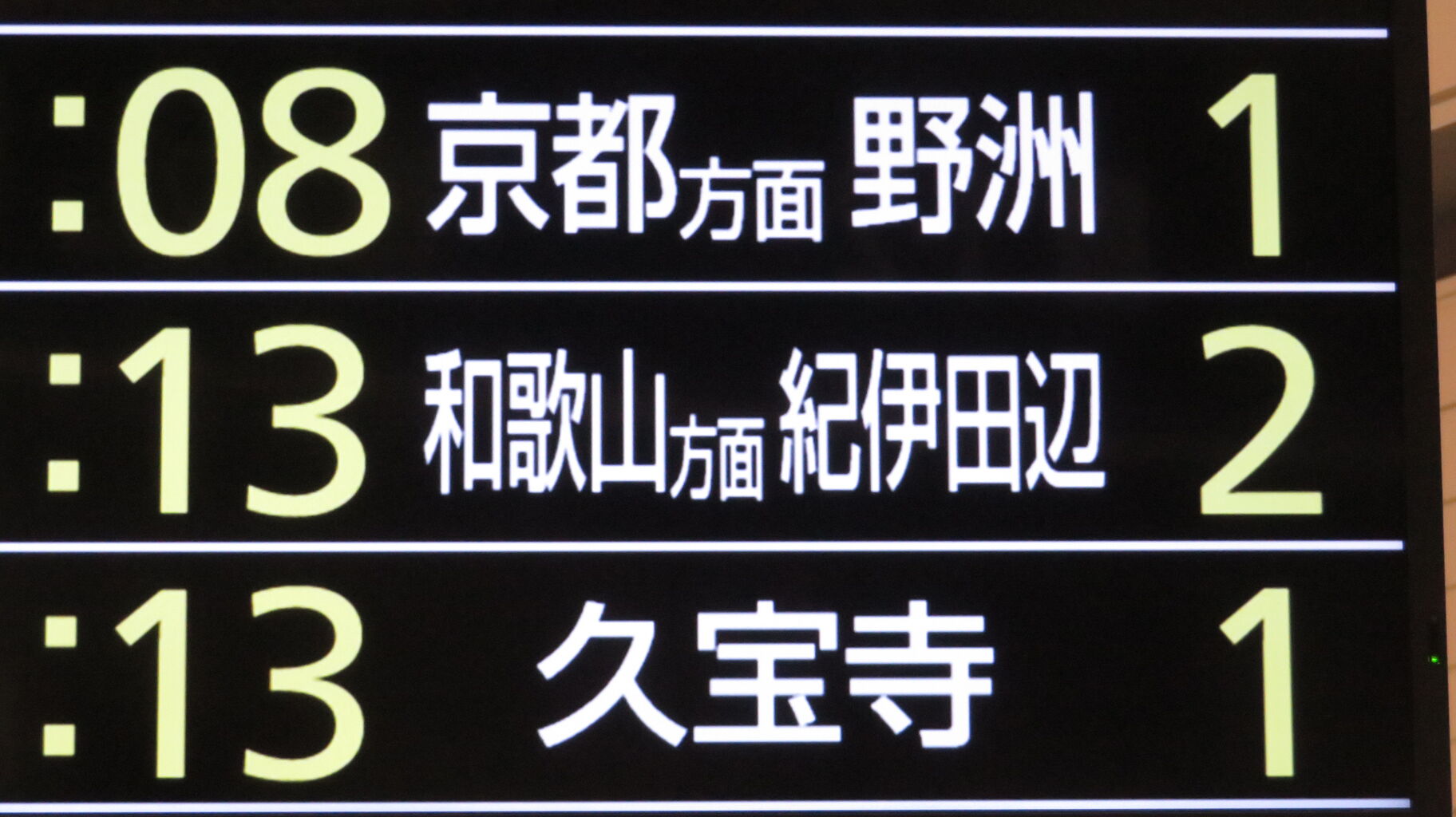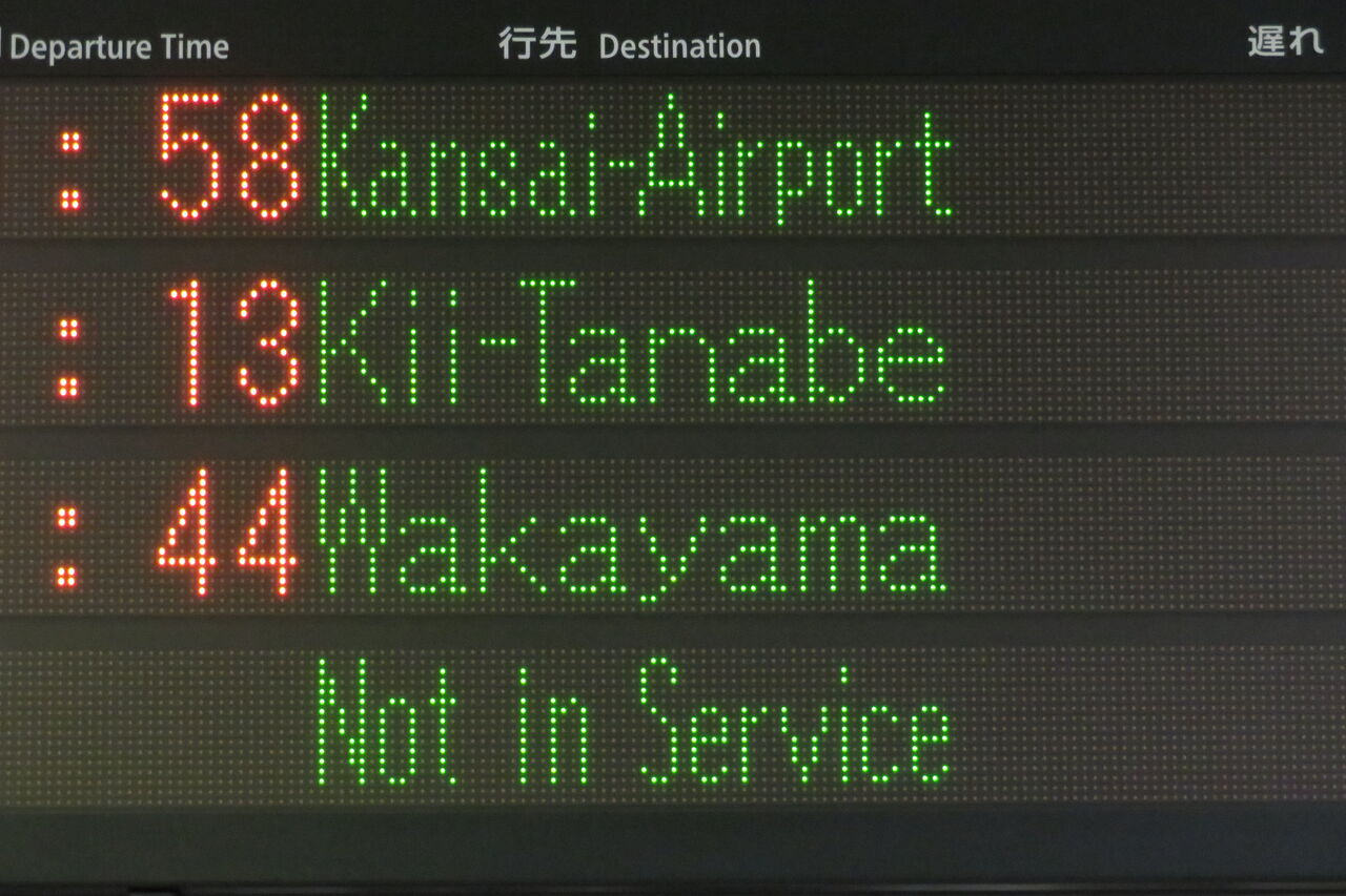 今回(2025年9月の金曜日)訪れると、「和歌山方面 紀伊田辺」 と表示されるようになっていました。