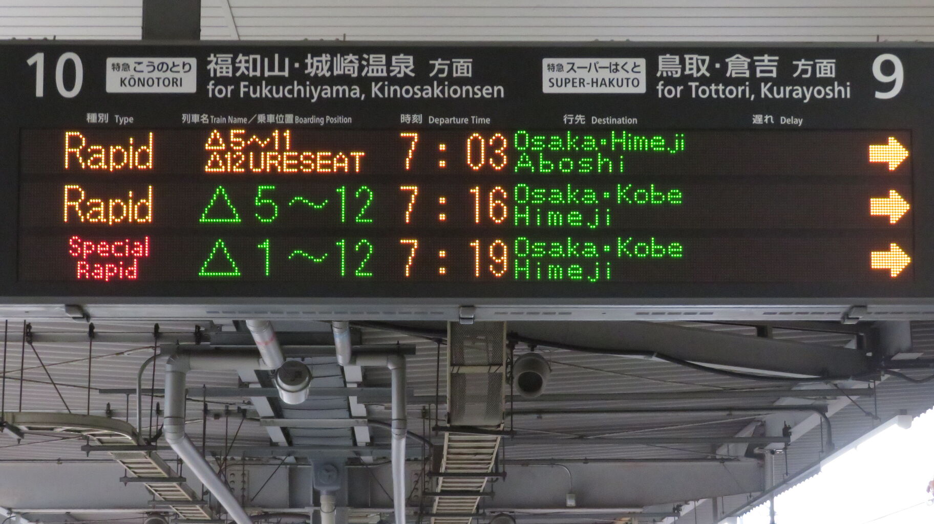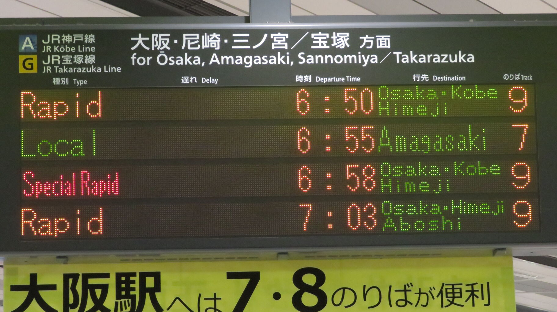 以上、新大阪駅で撮影した、9番のりばから発車する 「快速」 を紹介しました。