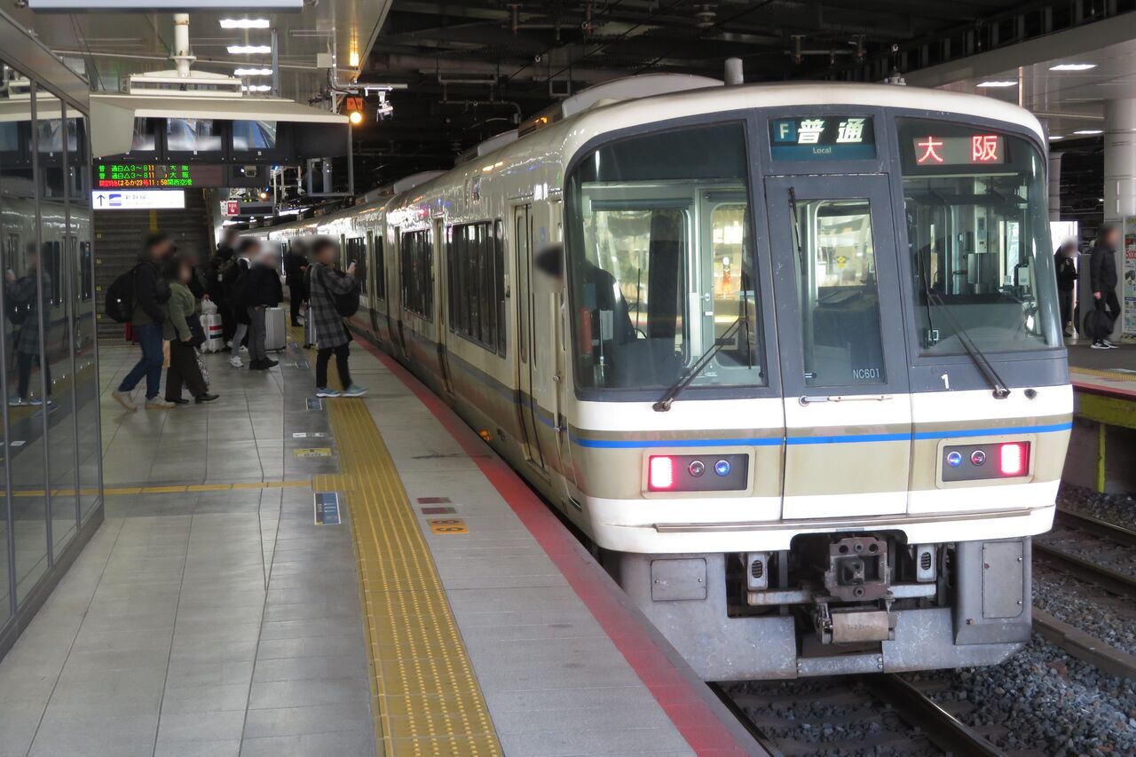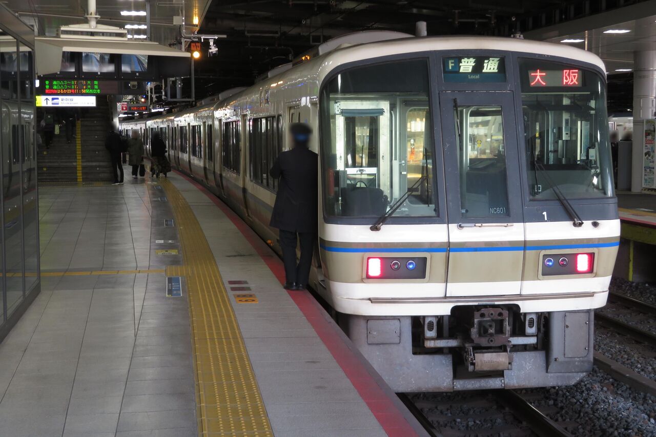 さっそく、3番のりばに停車した普通 大阪行きを撮影。