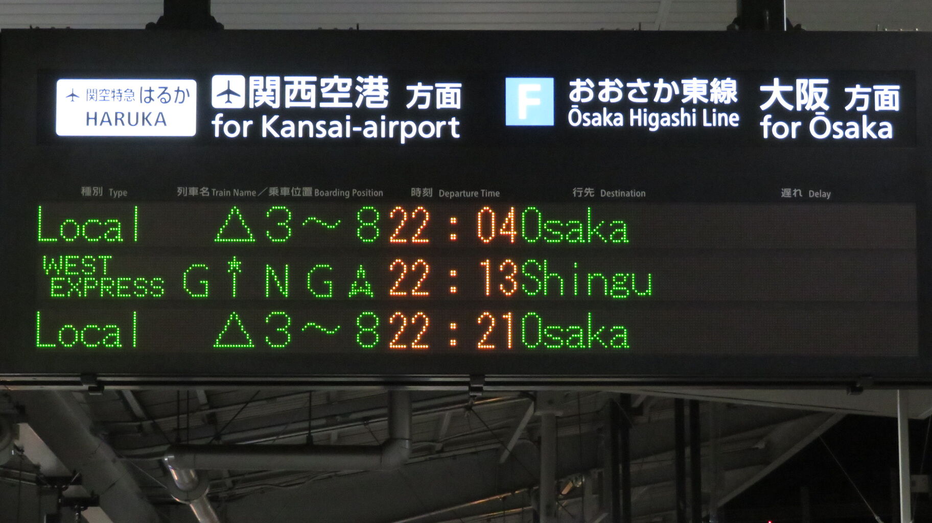 ※新大阪駅 3番のりばの発車標(2023年4月撮影)