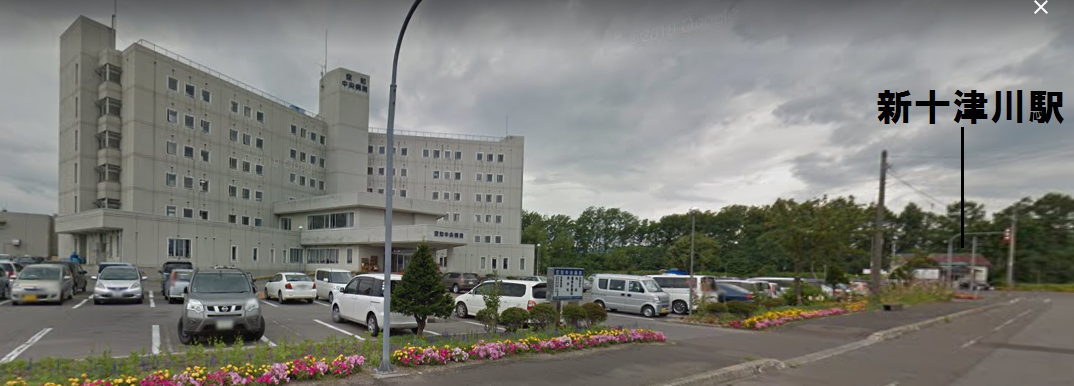 こんな大きな病院が、新十津川駅の目の前にあるんですね。