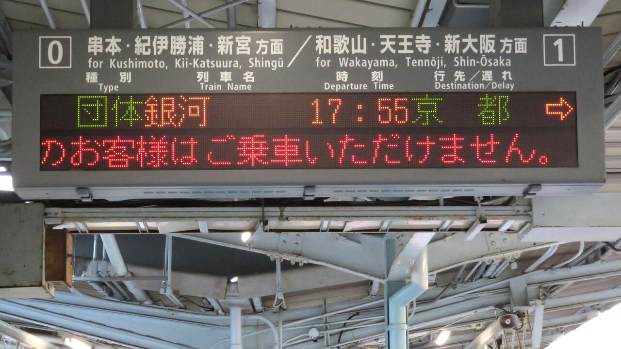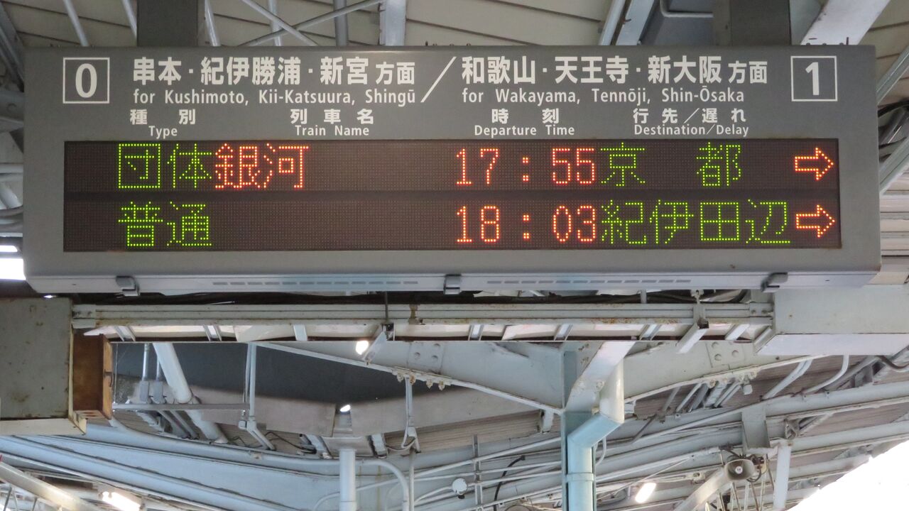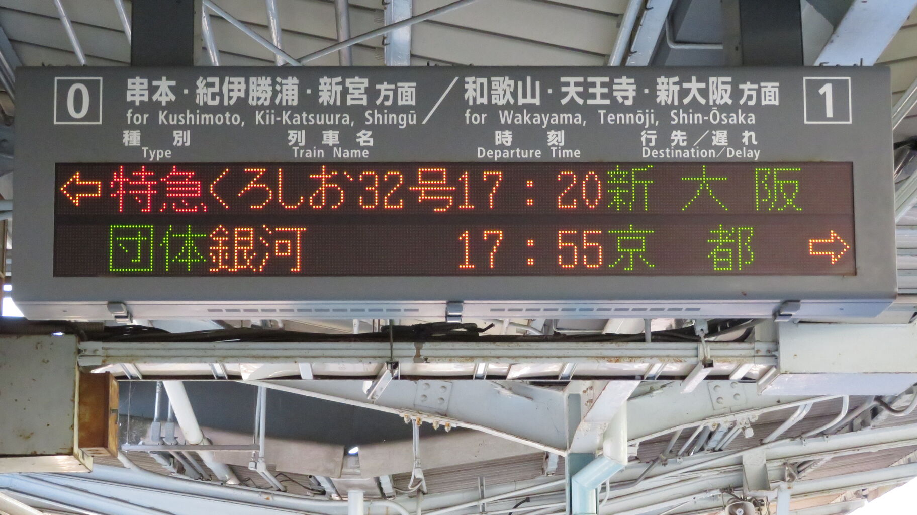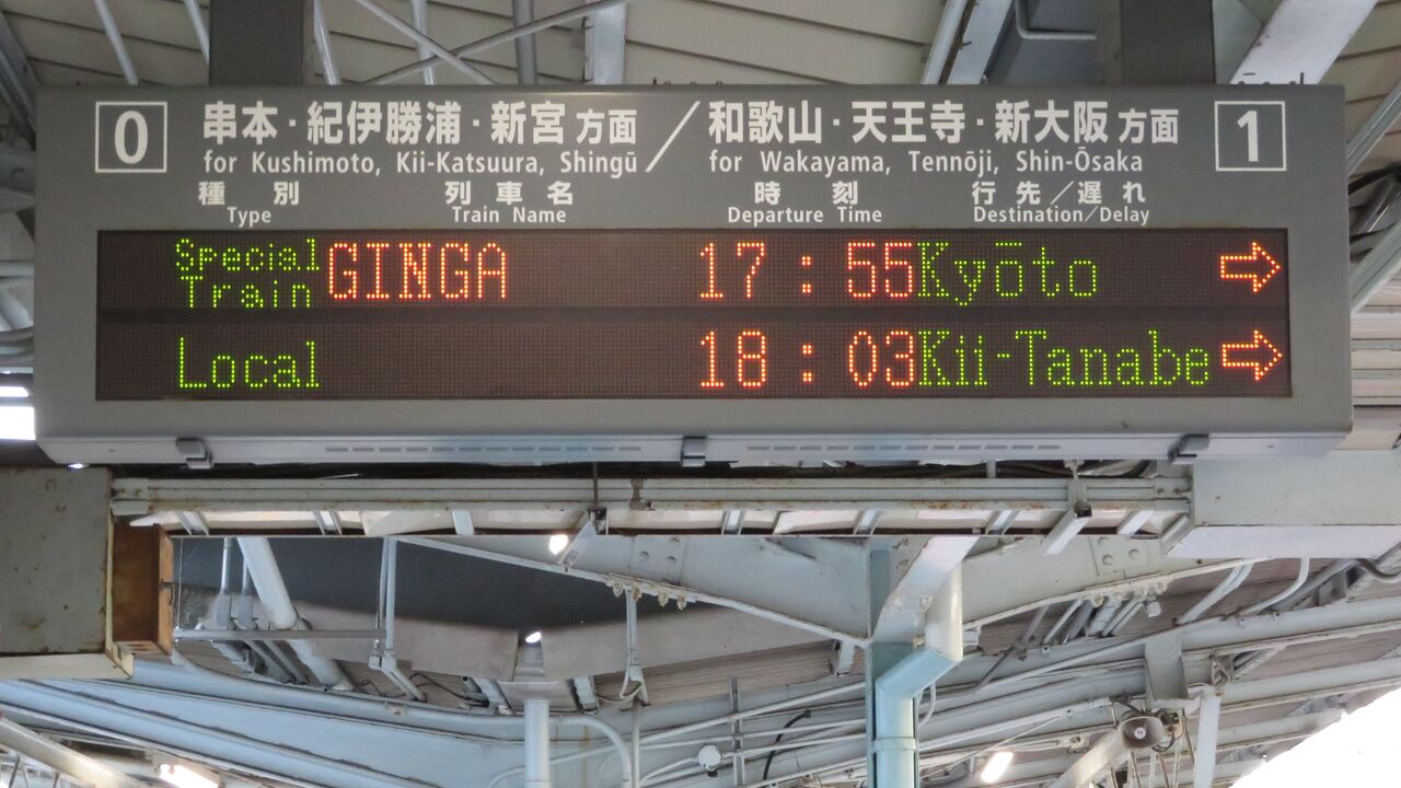 この駅を発車する京都行きは、銀河と特急くろしお12号(8:20発)のみです。
