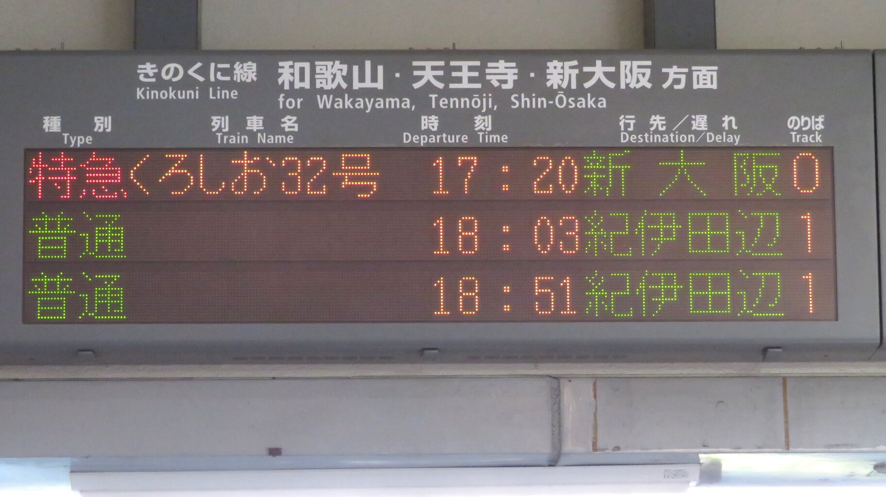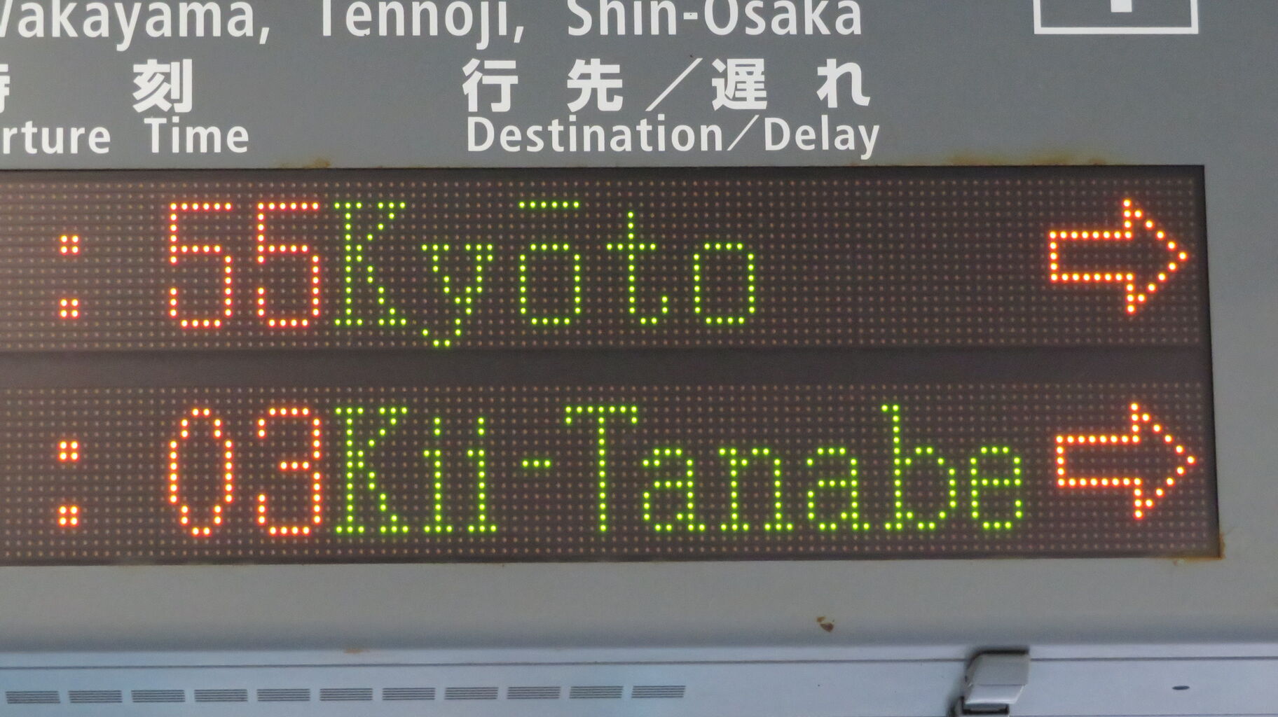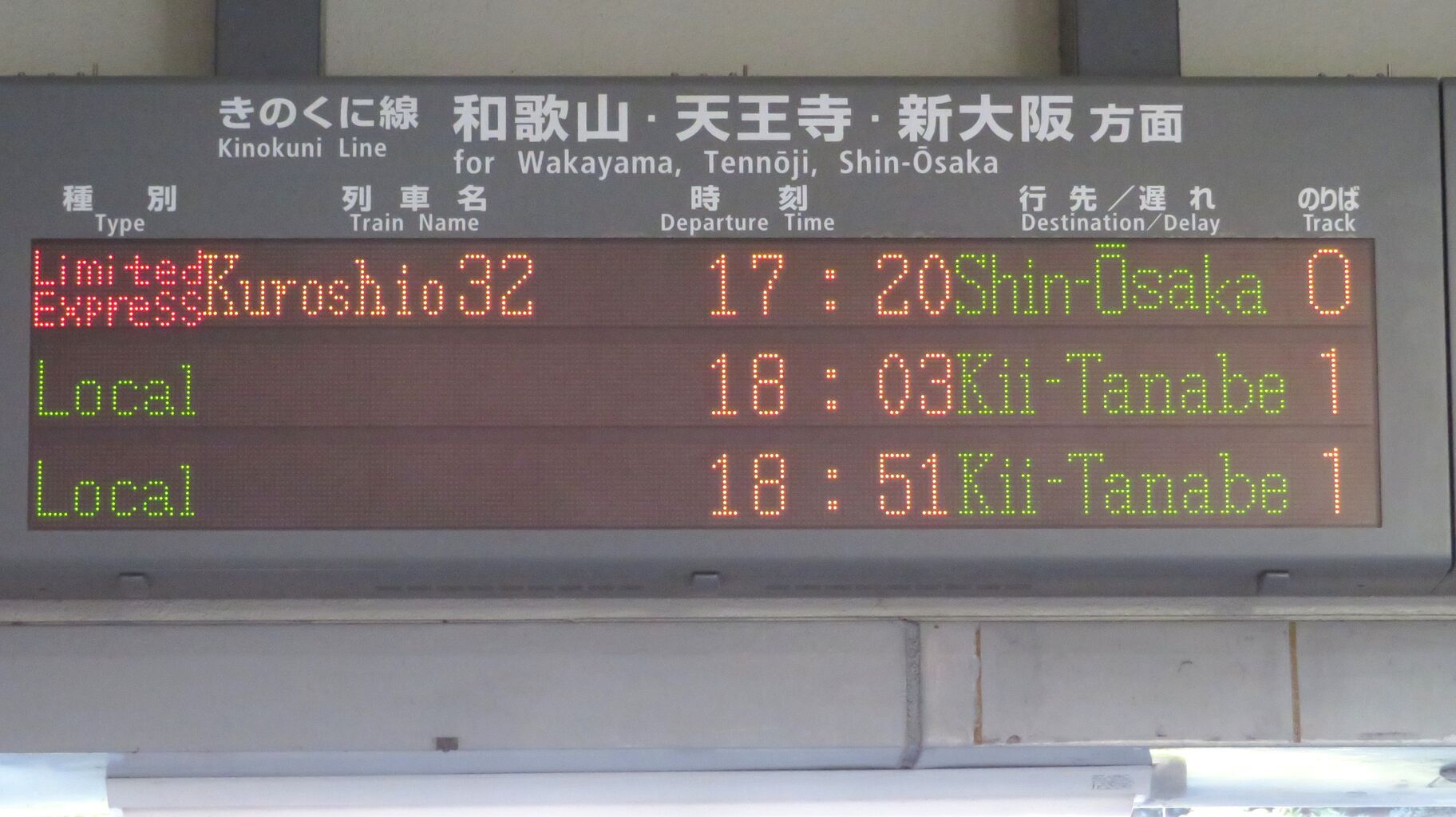 この駅を発車する京都行きは、銀河と特急くろしお12号(8:20発)のみです。