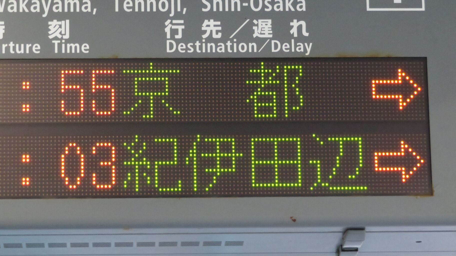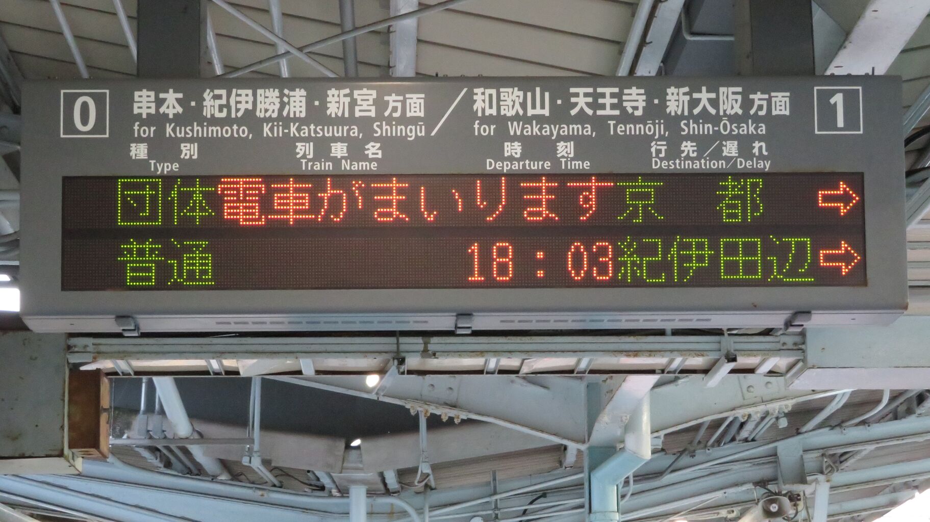 団体専用列車の場合、阪和線などでは 「列車がまいります」 と表示されますが、この駅では普通電車と同じく 「電車がまいります」 と表示されます。