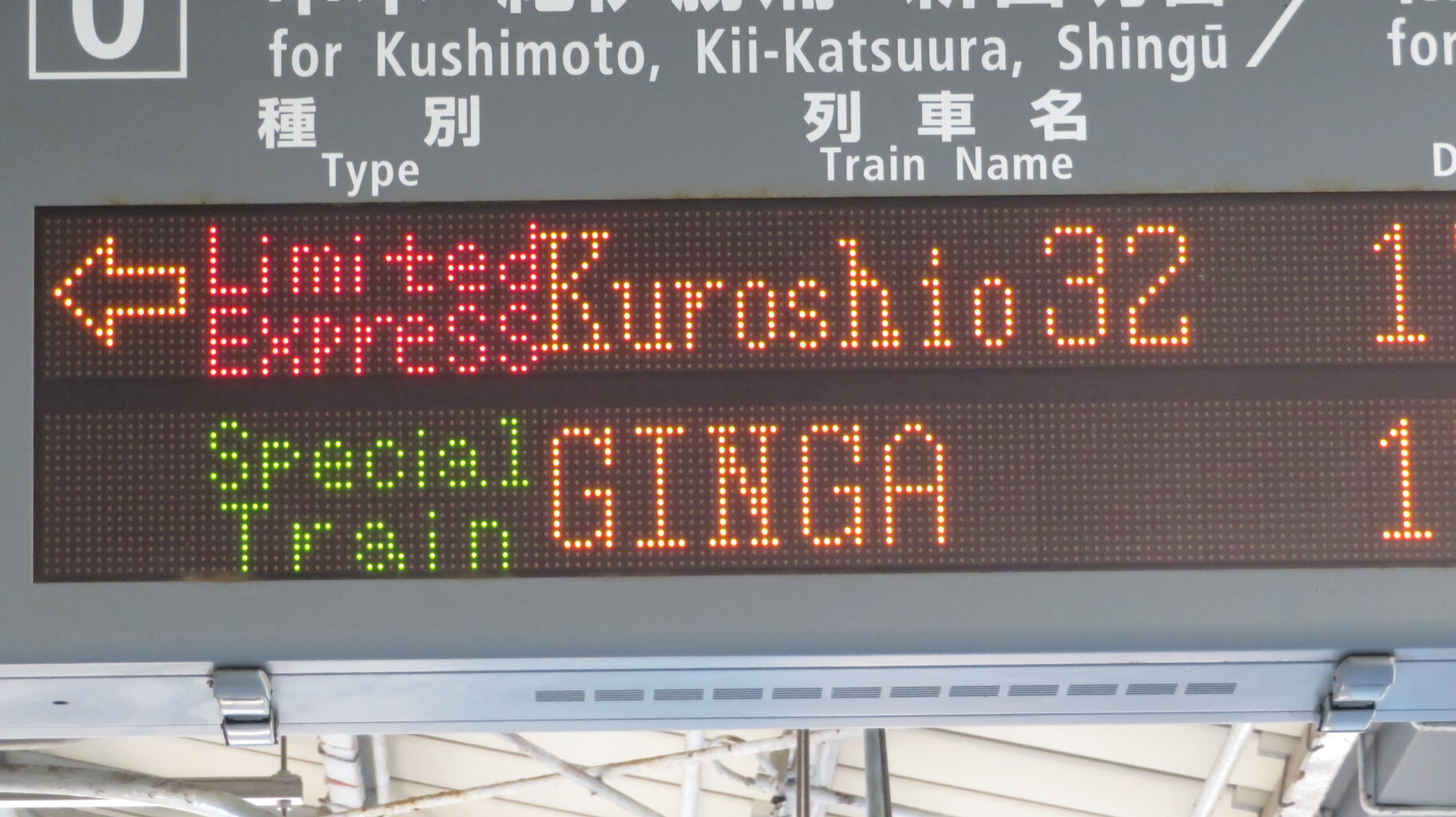 「銀河」 の表示は、新宮駅だと赤色でしたが、この駅ではオレンジ色になっています。
