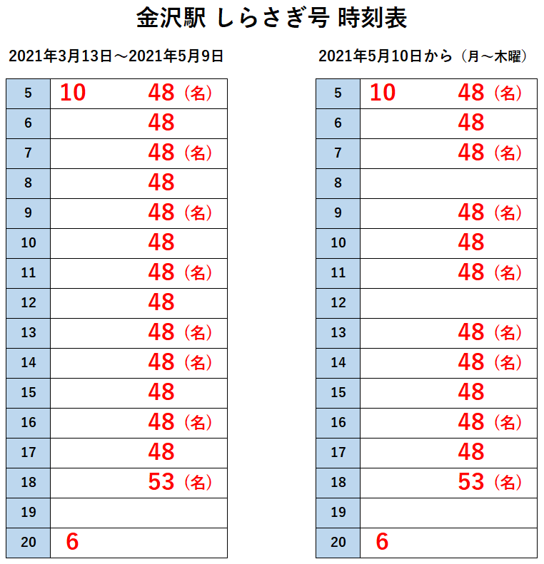 ※行き先は全て金沢行き。