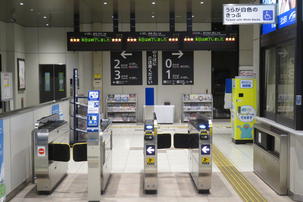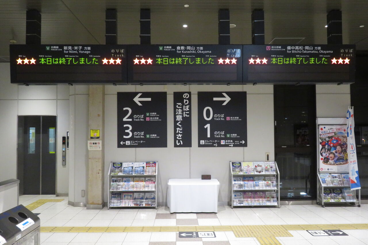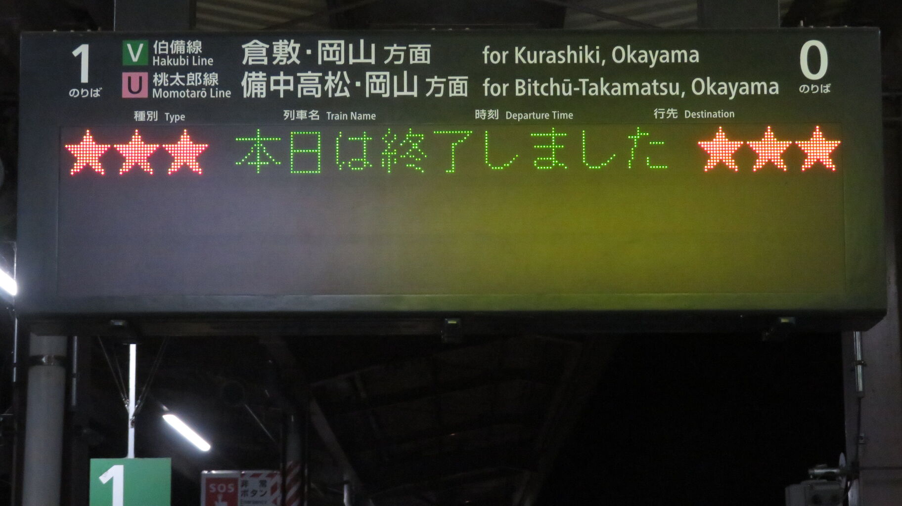 以上、総社駅で撮影した 「★★★本日は終了しました★★★」 表示を紹介しました。