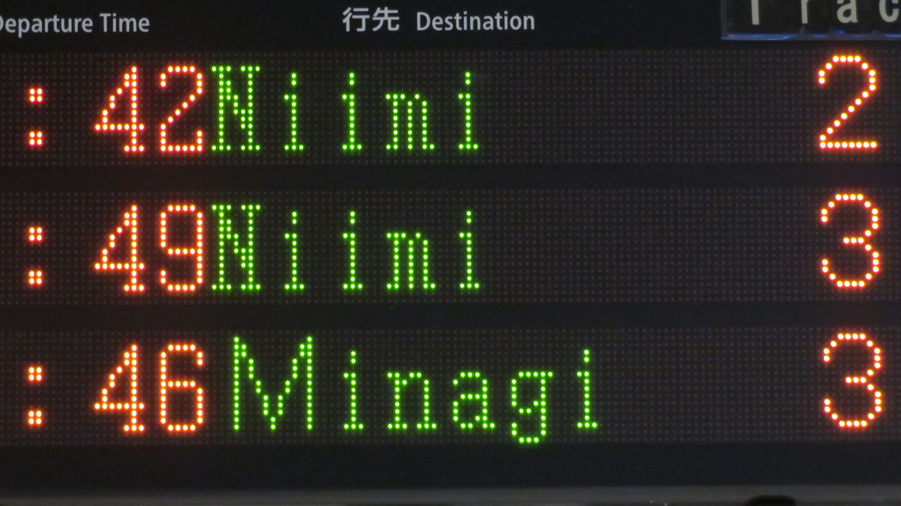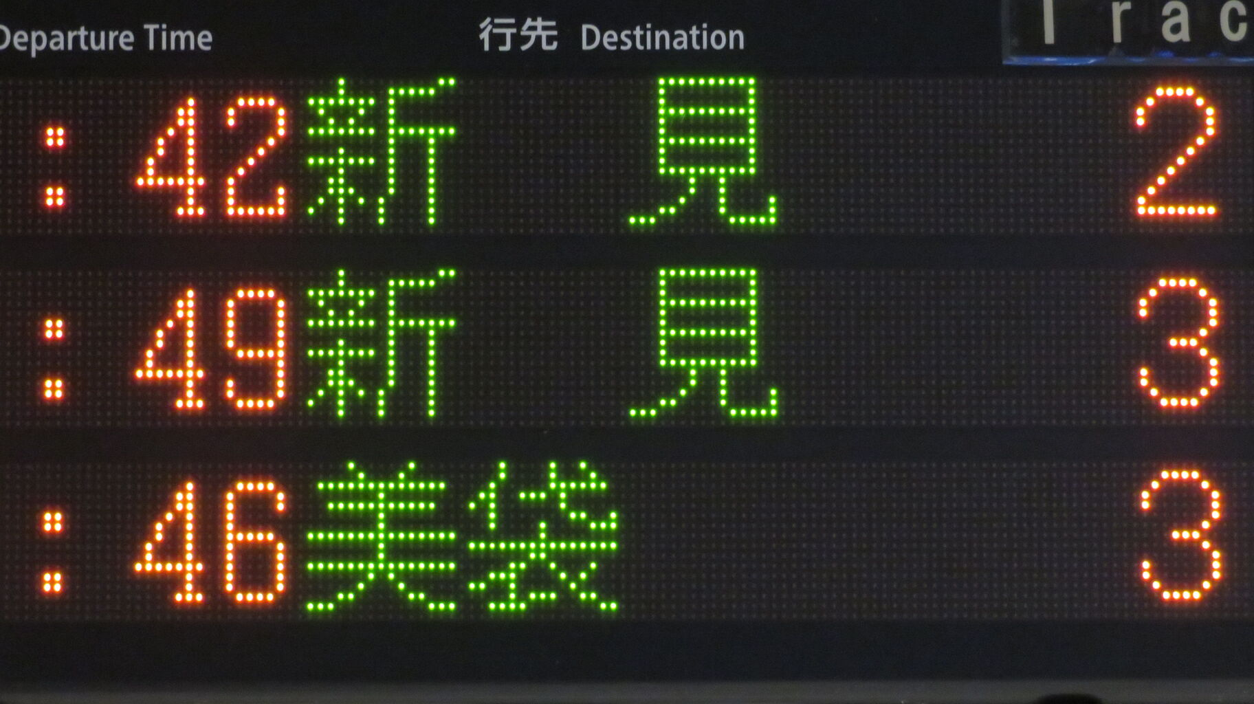 続いて、2・3番のりばに設置されている発車標を撮影。