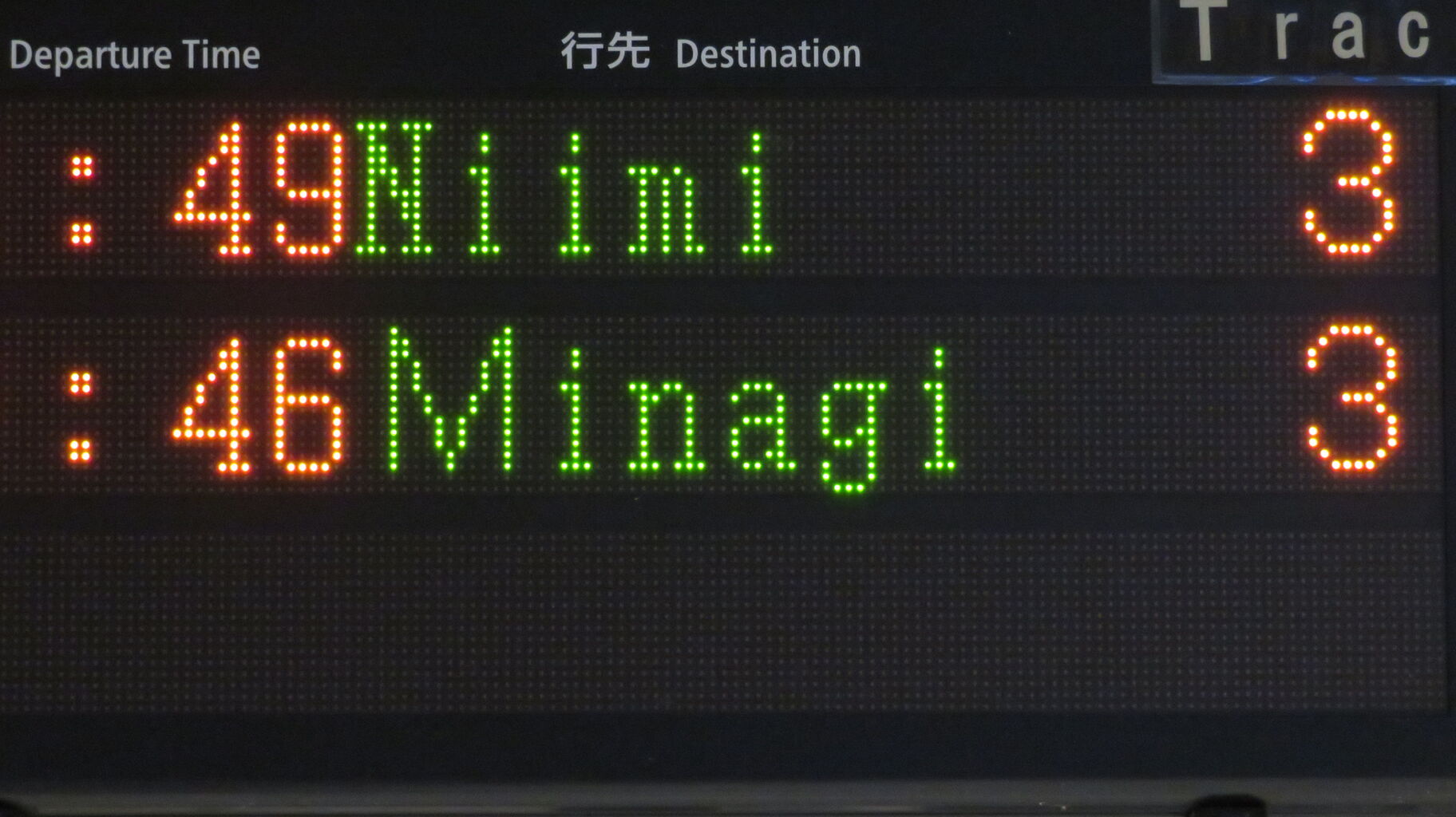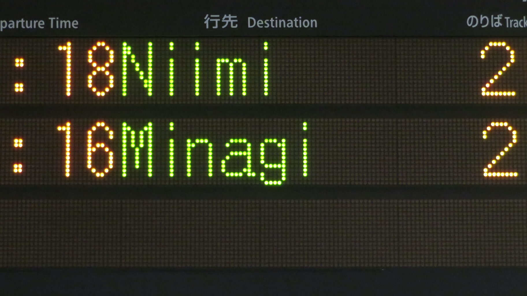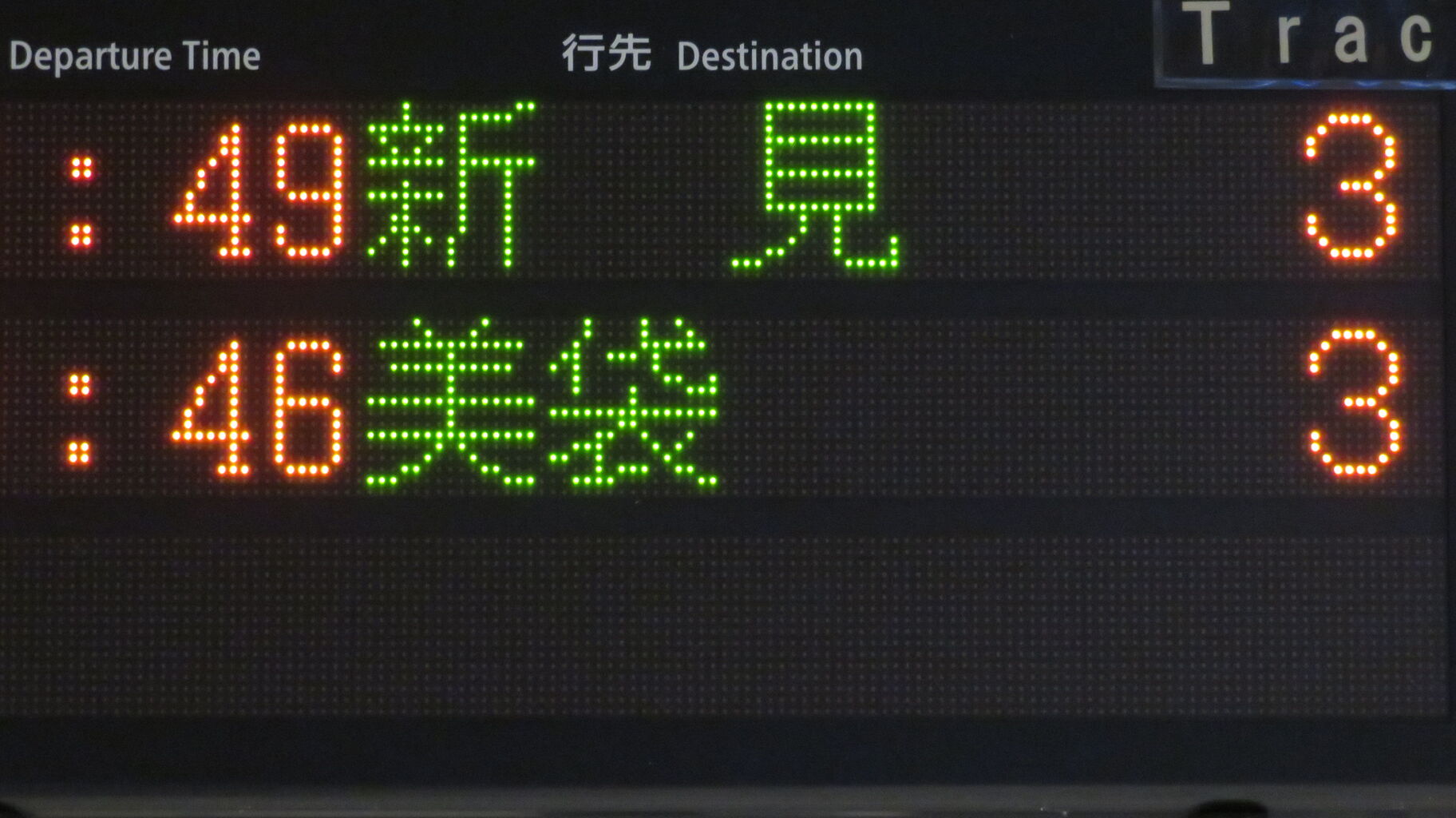 こちらは、通過列車が2本表示されているため、普通 美袋行きの表示がまだ出ていませんでした。