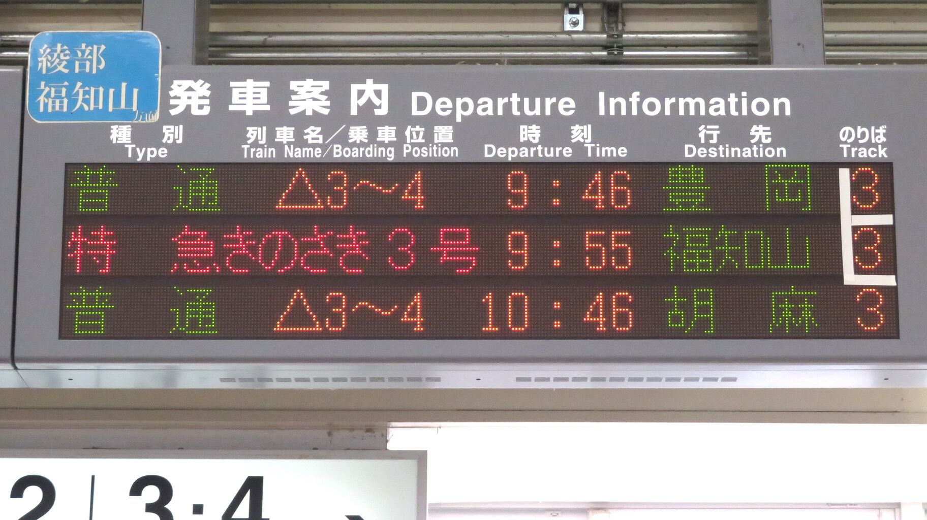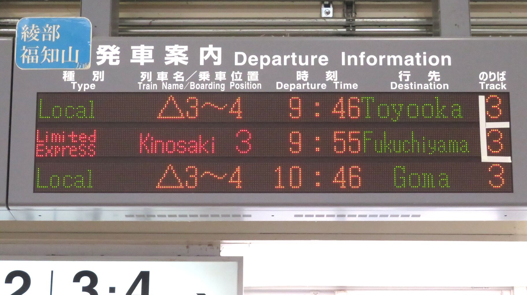 まずは、3・4番のりばに設置されている発車標から。